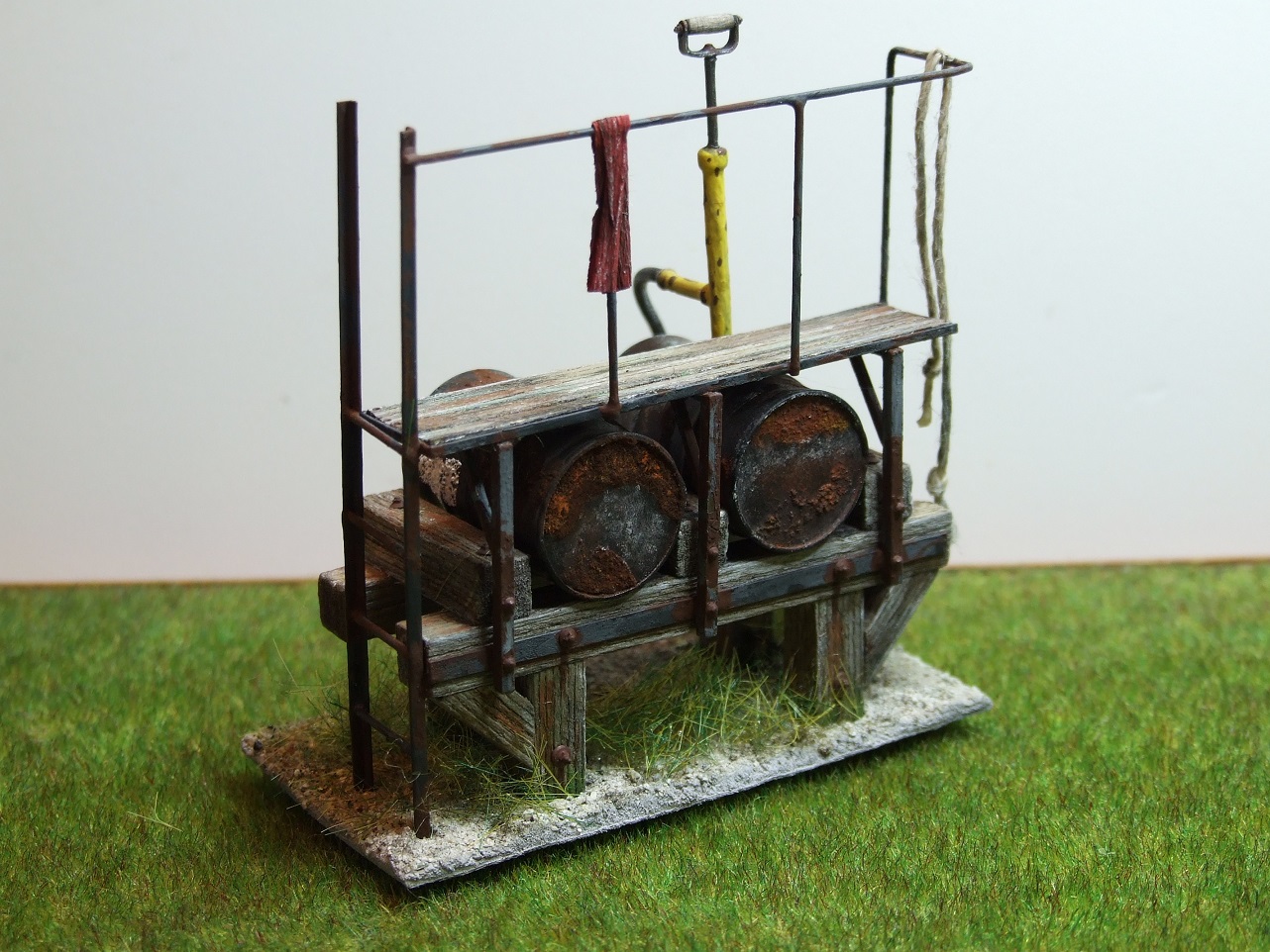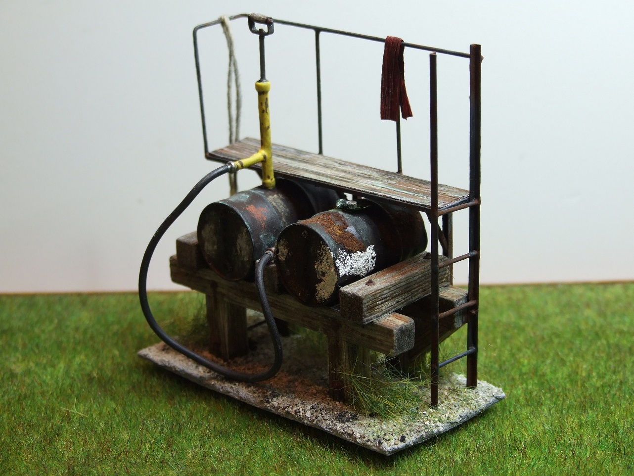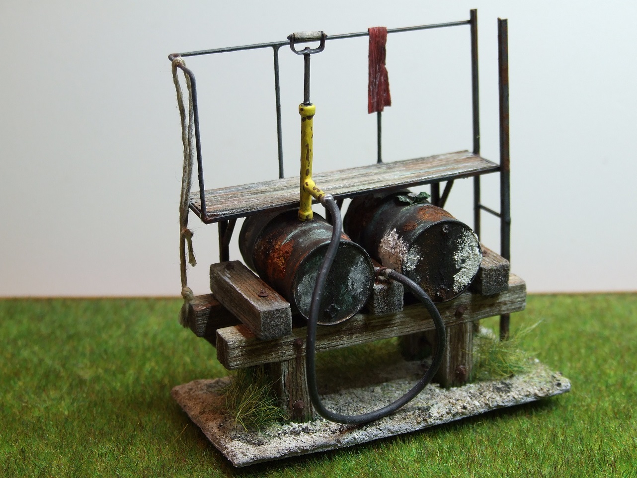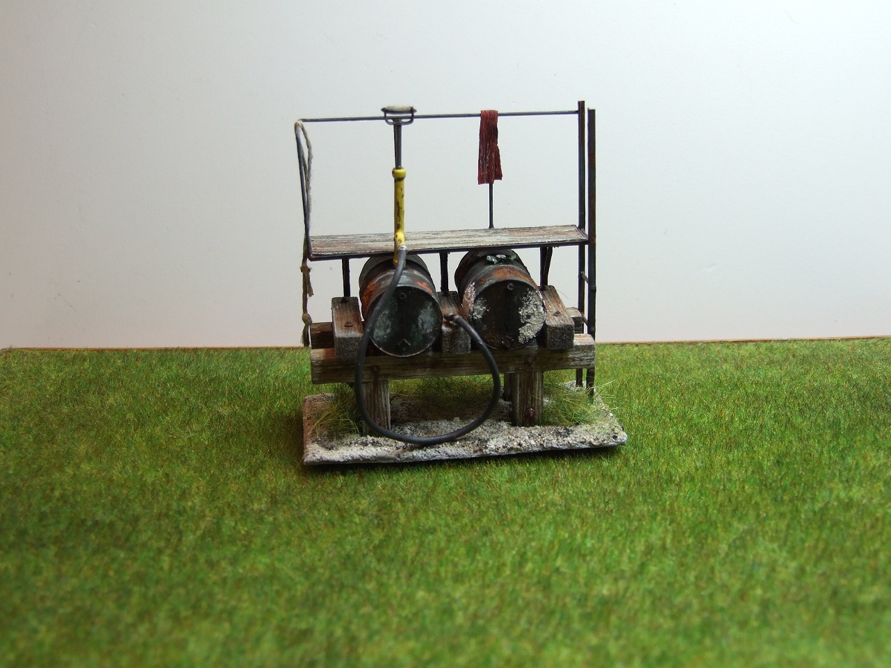 Je vous avais promis une suite de ce distributeur de fioul au 1/35, le voici installé sur son socle prêt à être mis sur le réseau.