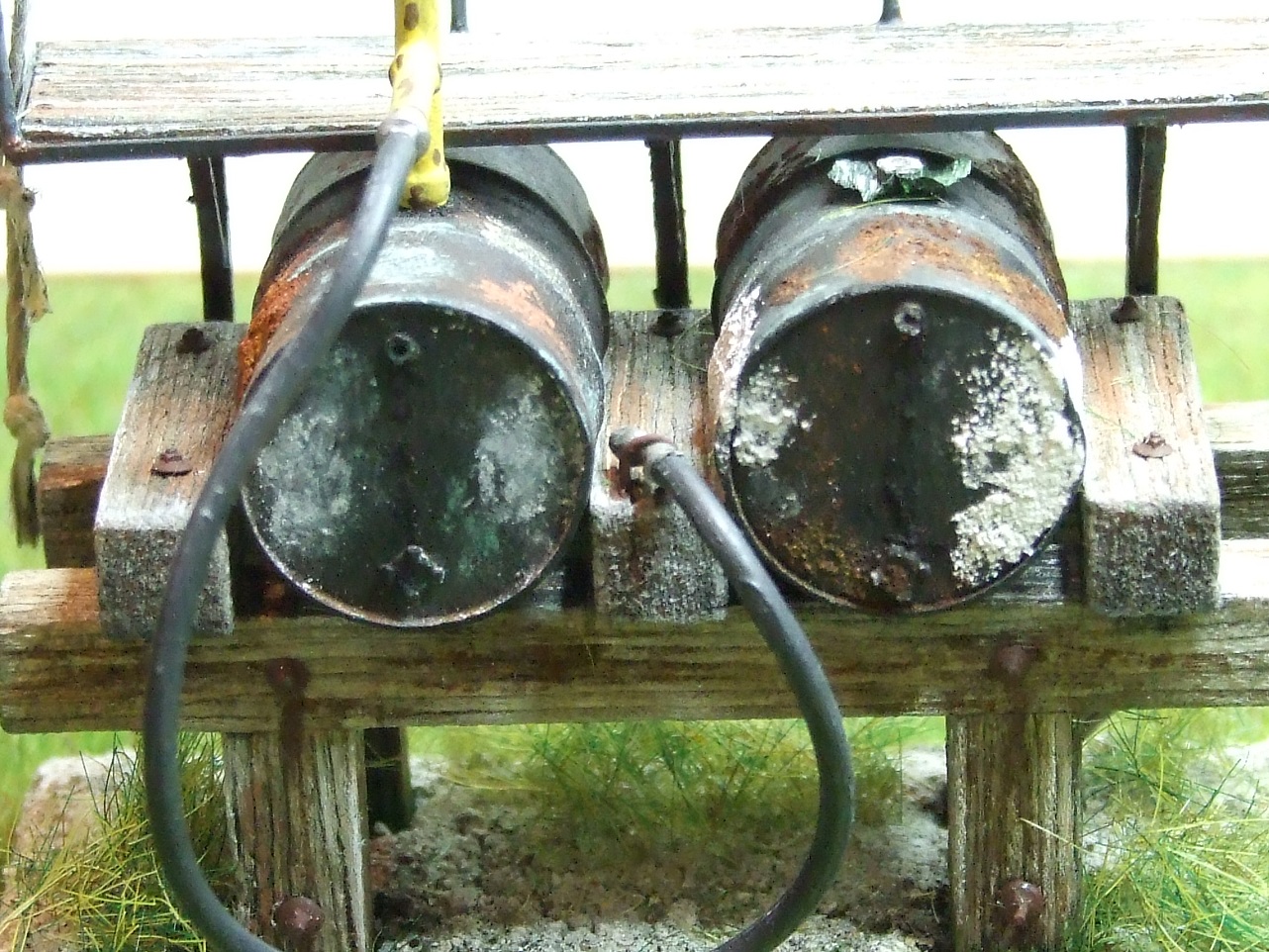 les tracteurs agricoles. Donc les traces grasses que j'ai reproduites sur le devant & le dessus de ces fûts sont raccord.