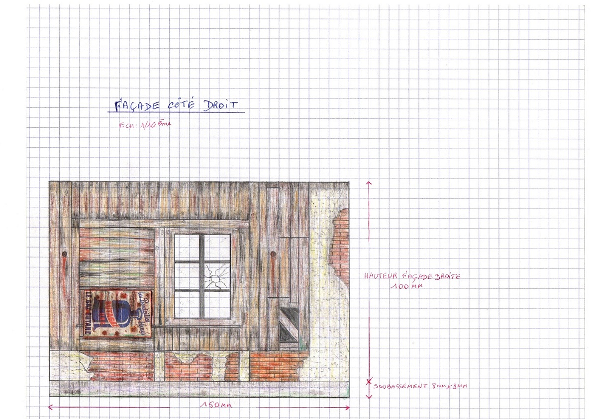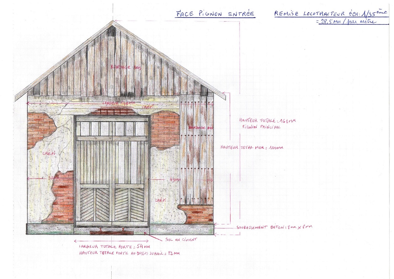 Voici donc les quatre faces de cette petite remise, ce plan est simplement là pour me guider, quand je construis une maquette que çà soit