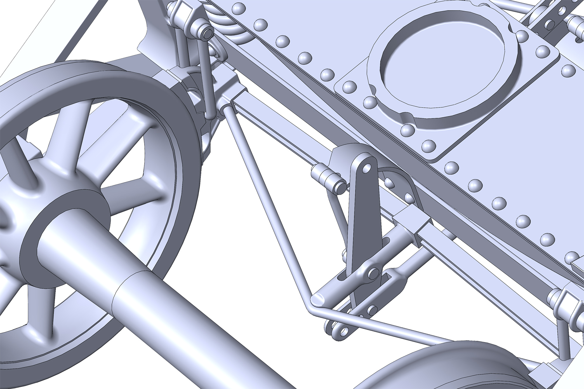 Avec également les plaques de fixation sous le châssis. Le réglage des vis permettra d'obtenir un trois points, je vais augmenter un peu leurs tailles, mais il faut d'abord que j'approvisionne...