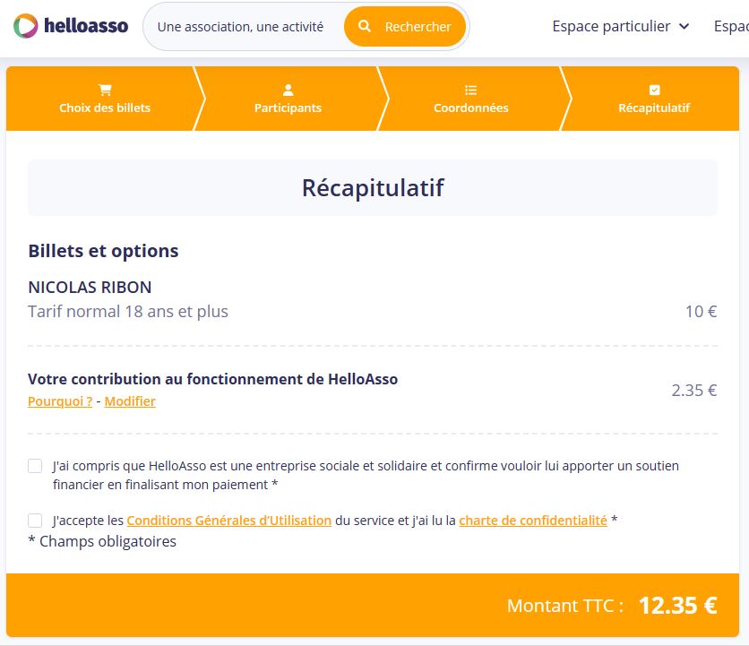 On peut désormais acheter son billet à l'avance sur helloasso ... avec un surcoût de 23,5 % ! Celle-là, on ne me l'avait encore jamais faite ...Phil66 a écrit : 03 nov. 2023, 15:49 Nous voilà à 3 semaines de l'expo et toujours pas d'infos sur la billetterie ! Normal ?