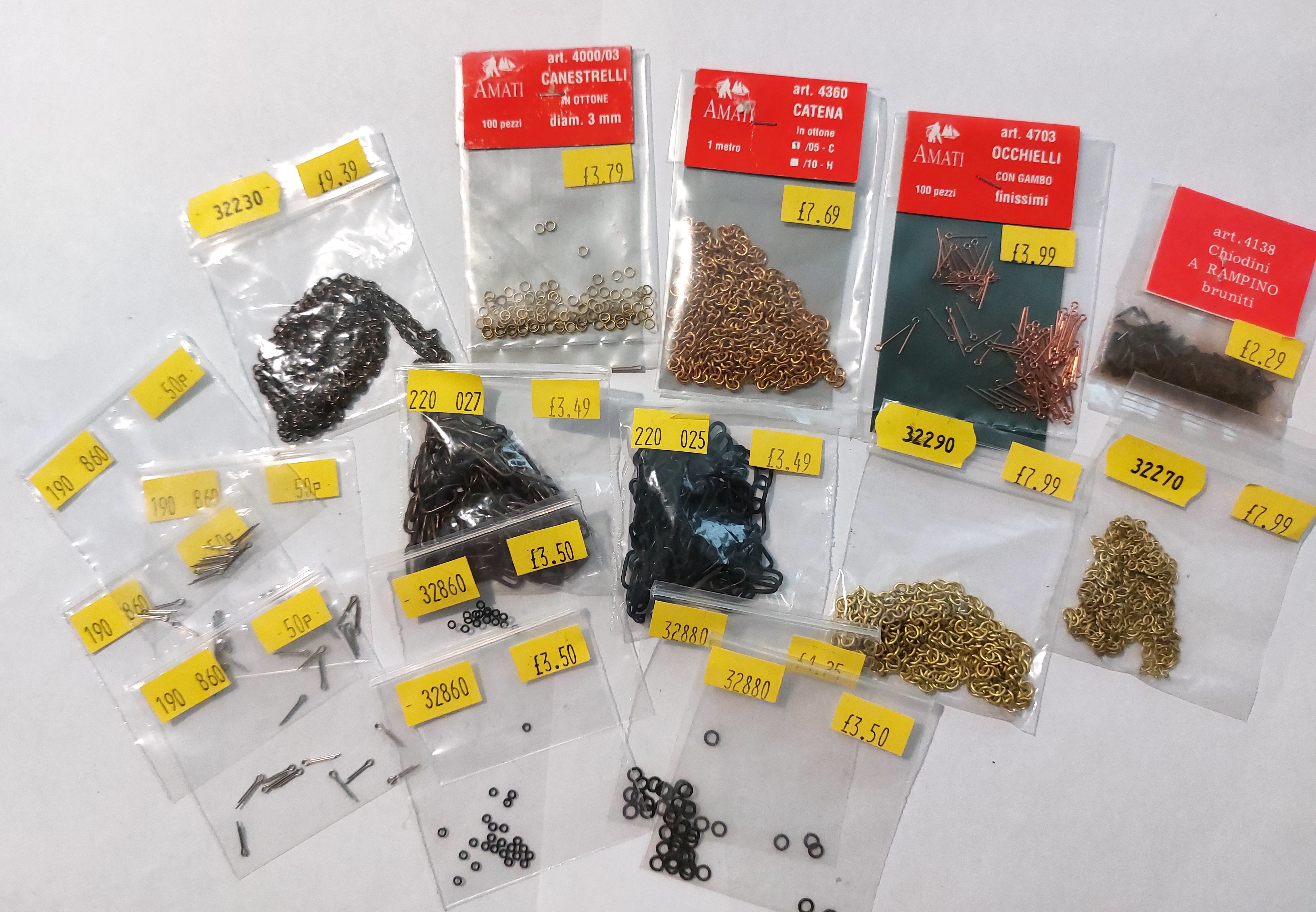 Pierre a fait une provision de chaines épingles fendues, anneaux etc.