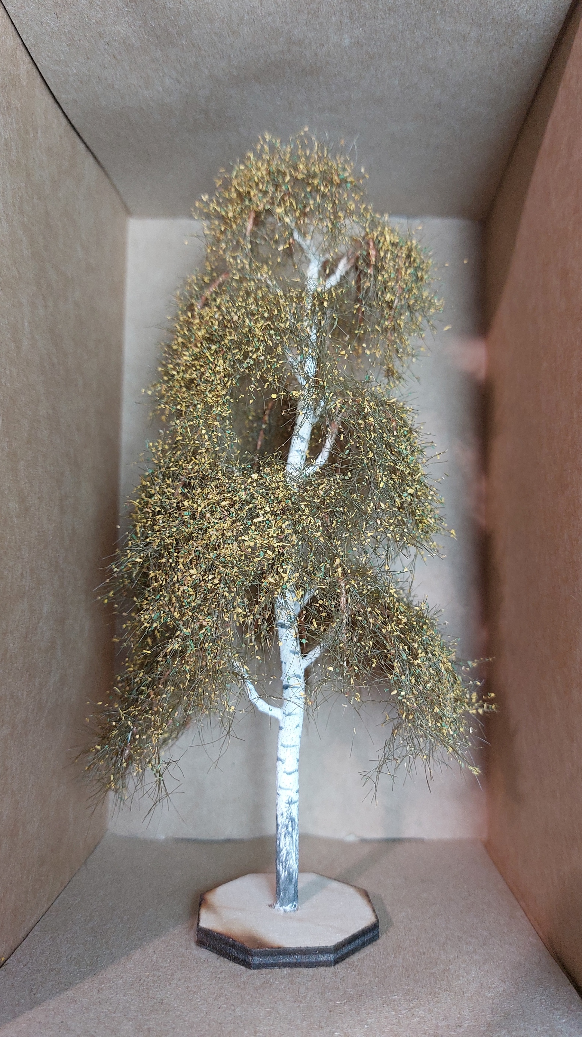 Ce fabriquant d’arbres est présent à la GUILDEX depuis quelques années. Ceux-ci sont faits à la main, sur armature métallique. Pierre a préféré les teintes d’automne, mais l’été est également disponible… (et peut-être d’autres saisons !). la gamme de prix va de £16 à £60 l’arbre… sont disponibles des Pins (Pine), Épicéas (Spruce), Mélèzes (Larch), Chêne (Oak), Bouleaux (Birtch), Pommiers (Apple tree)(, Peupliers (Poplar), Érables (Maple) et Châtaignier (Chestnut). Pierre n’a pu résister à revenir avec une (petite) forêt de bouleau et d’érable !
