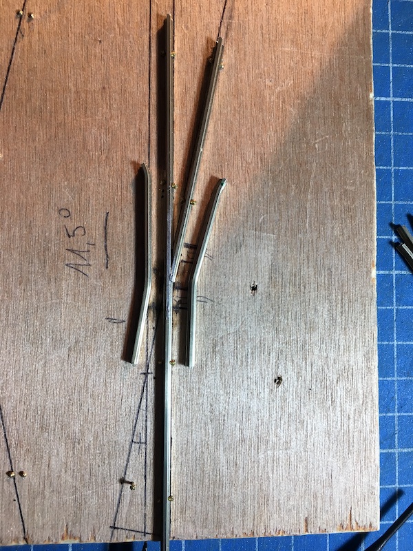 Sur les conseils éclairés de Guy KERN, début de construction de la pointe de cœur sur une planchette tracée pour permettre le positionnement correct des composants :