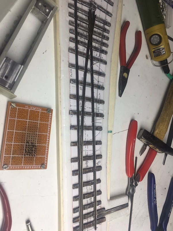 En réponse à Joël, non le coeur n'est pas soudé sur une plaque laiton, mais la construction se fait sous forme d'un montage libre avec les seuls morceaux de rail brasés l'un après l'autre.