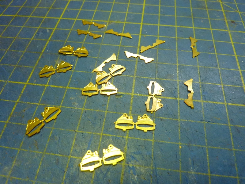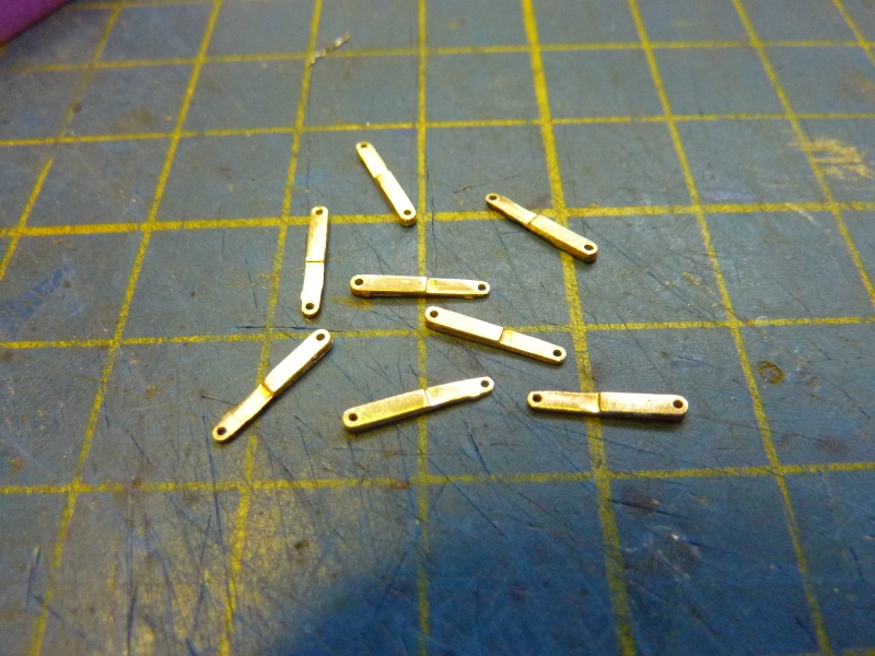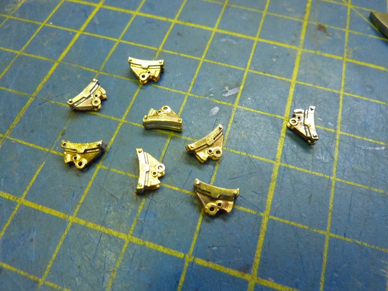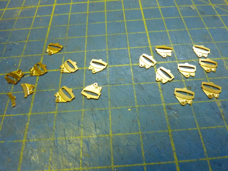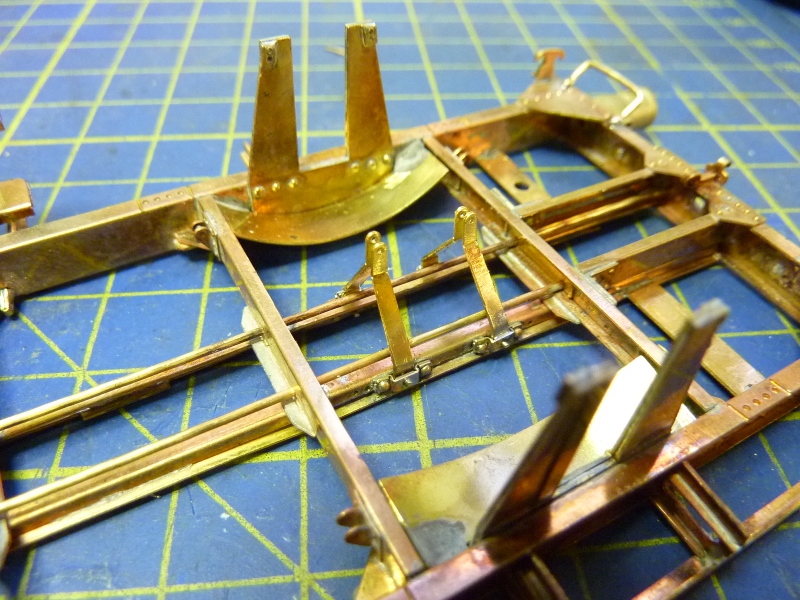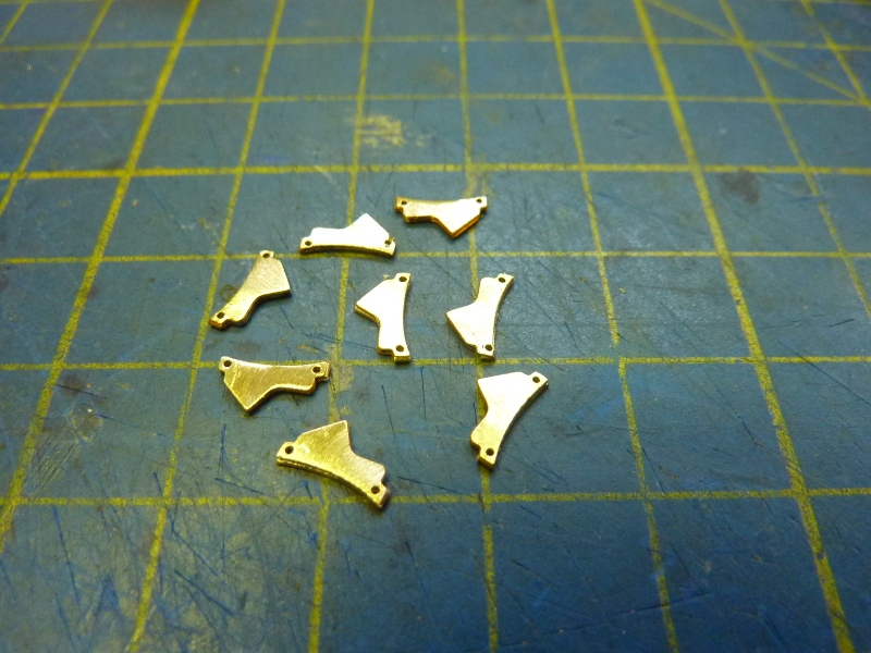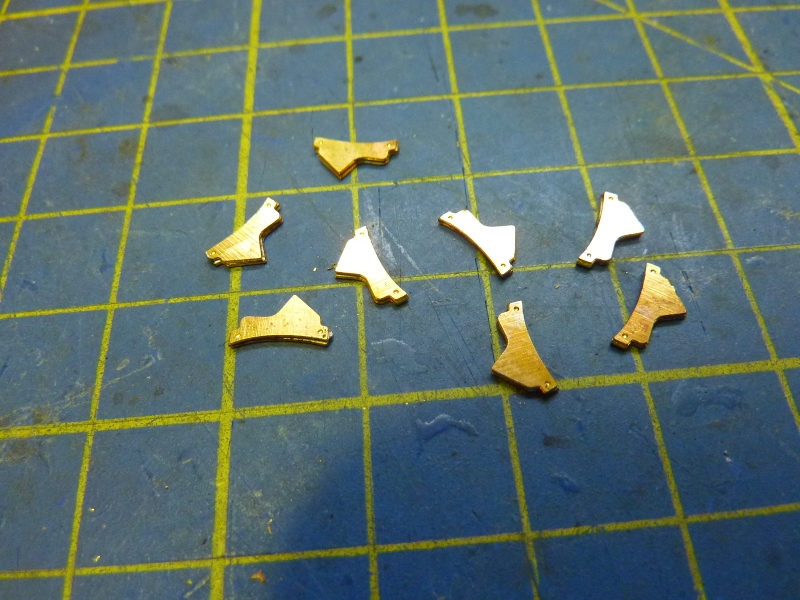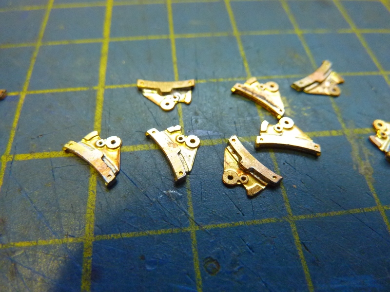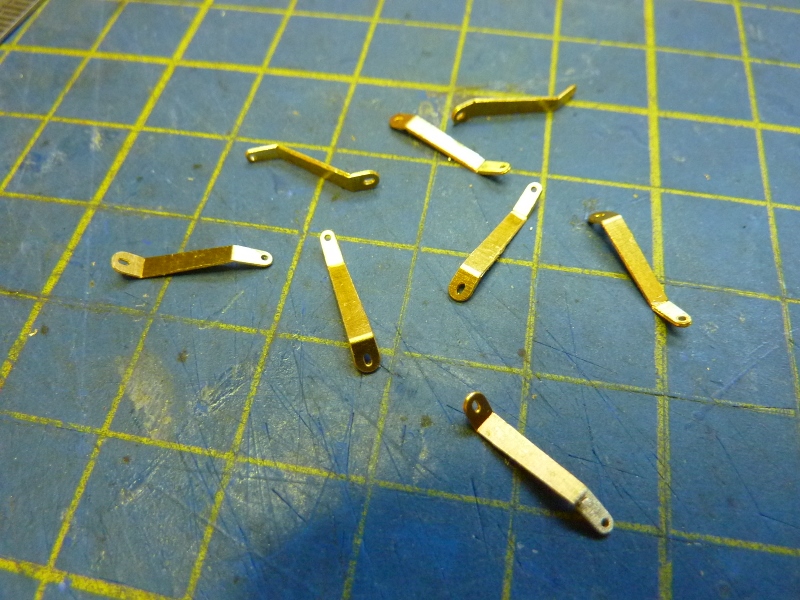 Rien de bien excitant pour la suite : préparation des différentes pièces constituant la timonerie de freinage (pièces 43, 44 et 49) Toujours le même principe : étamage, pliage et soudure à la flamme.
