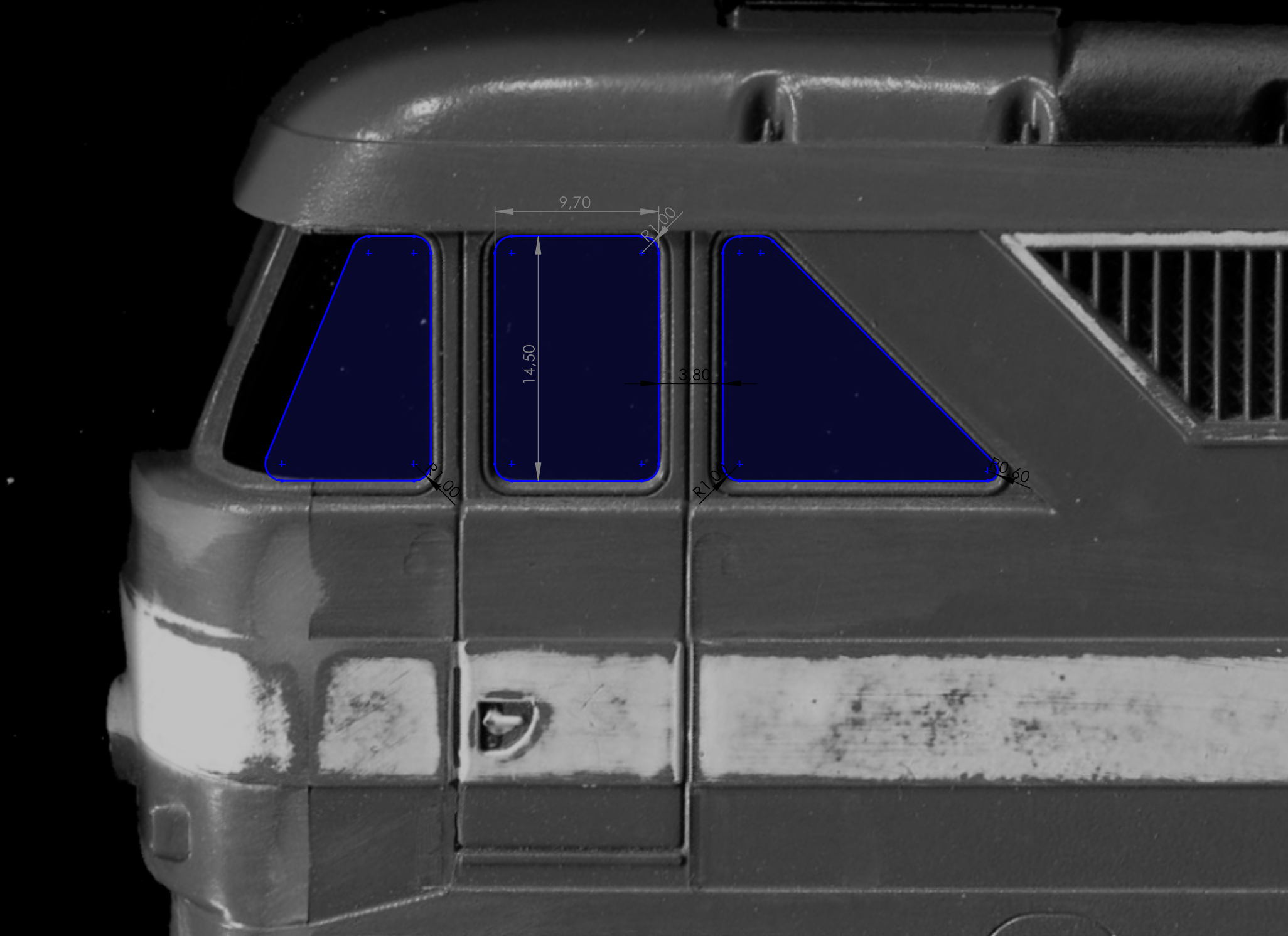Pour ça j'ai scanné la caisse, puis je l'ai mise à l'échelle avant de retracer les contours des vitrages.