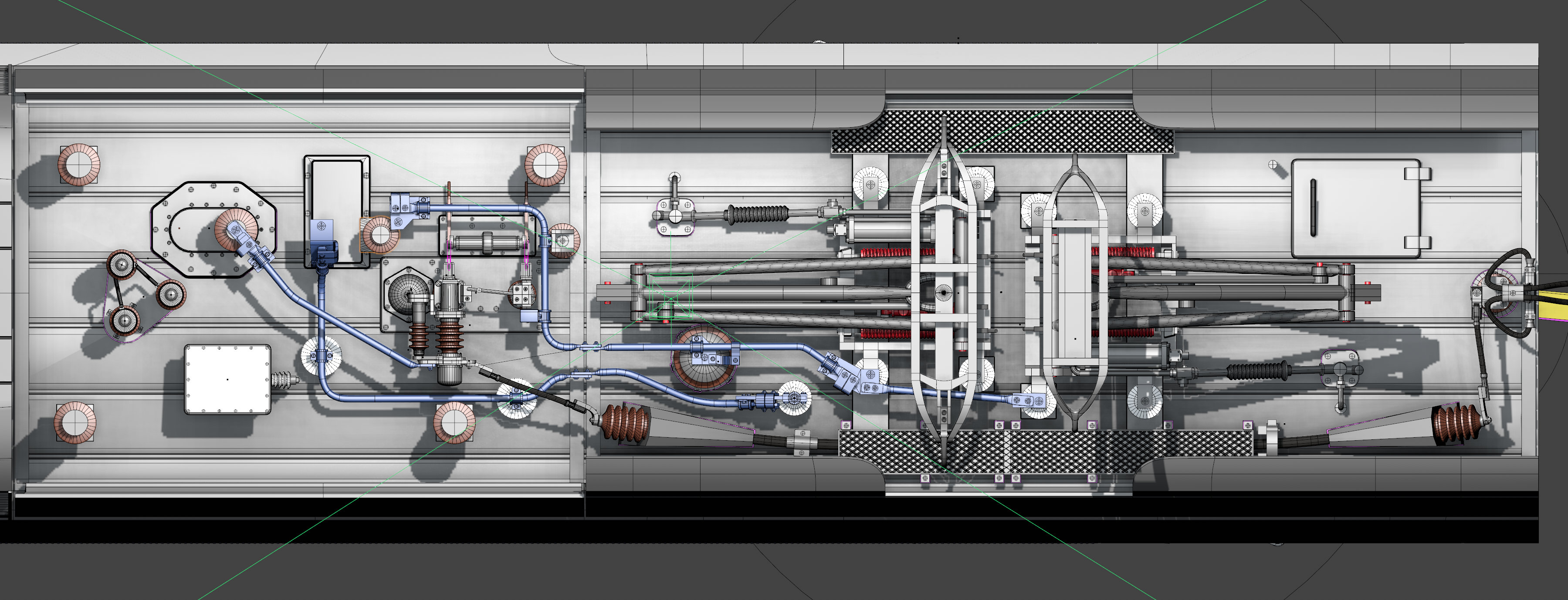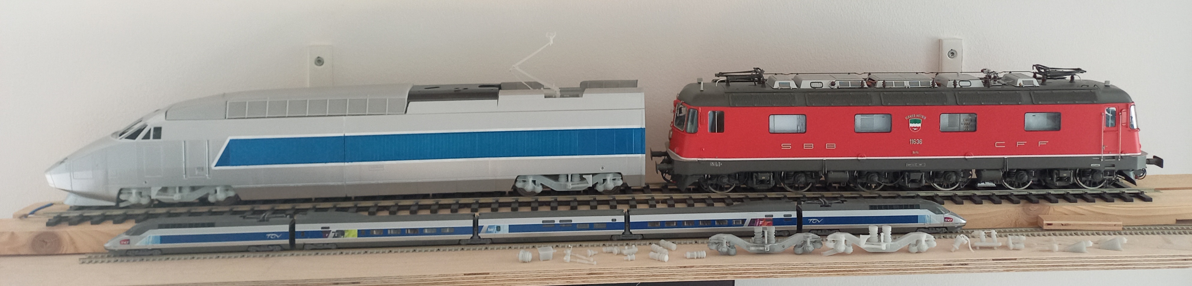 Ça comporte deux bogies supplémentaires comme travail principal. La voiture du milieu - pour le reste - étant assez simple à modéliser...