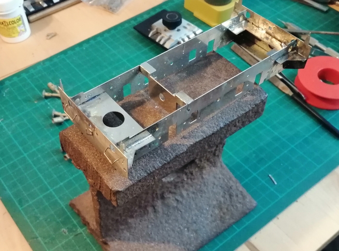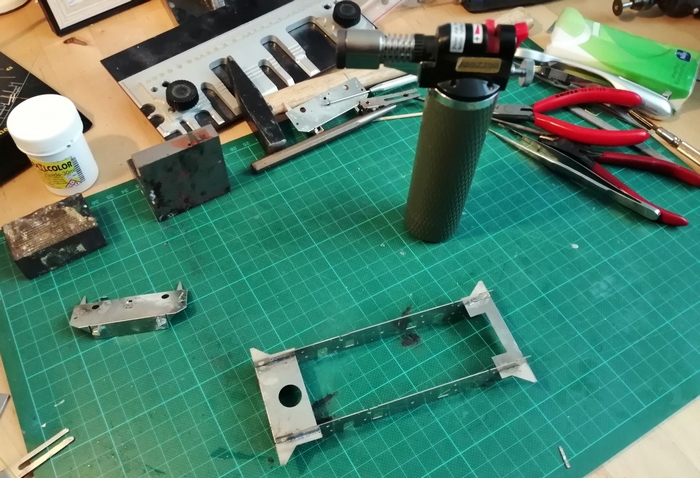 Exemple : la pose des mains d'atteleur ! Là, c'est le fer souder qui a pris le relais, mais quand il a fallut poser les faces sur le châssis, c'est au chalumeau !