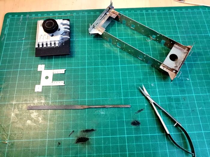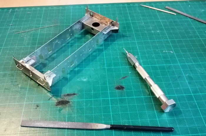 Bref, les mains d'atteleur sont montées, il a fallut ébavurer et limer l'arrière de la face pour la plaquer au châssis, et puis souder au chalumeau !