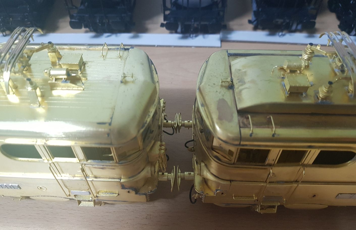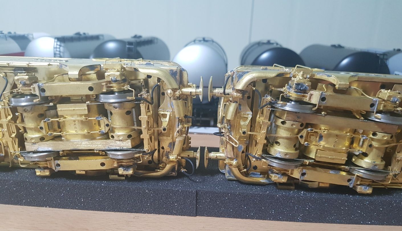 Sur les modèles de série, les câblots d'UM seront remplacés par des petits tubes en caoutchouc (comme pour les sablières et les câblots de chauffage). Ces locomotives ont un bon effort de traction eu égard à leur petite taille. La machine à toiture basse est la BB 9404 et celle à toiture haute est la BB 9461 de la gamme proposée par TM.