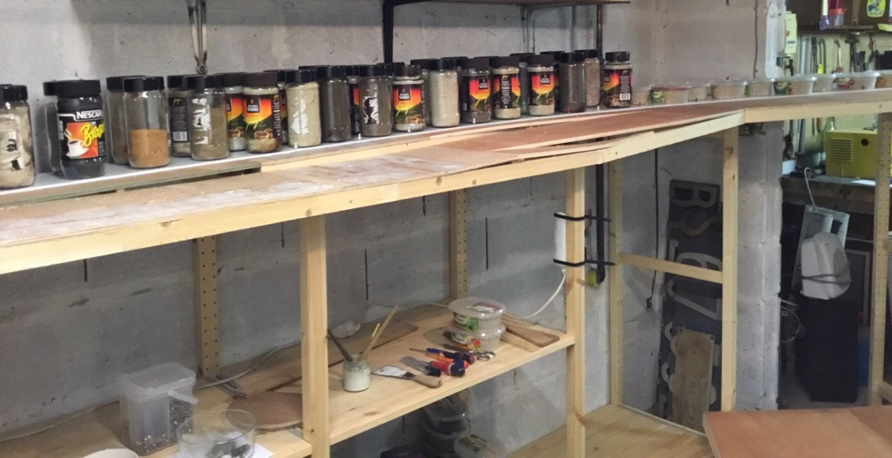 Module classique: système modulaire Ikea et plateau en Cp de 10mm renforcé par des tasseaux de 22x35mm de section. Les bords de modules seront habillés à la fin d'une belle tranche en Cp de 100mm de haut peinte en noir.