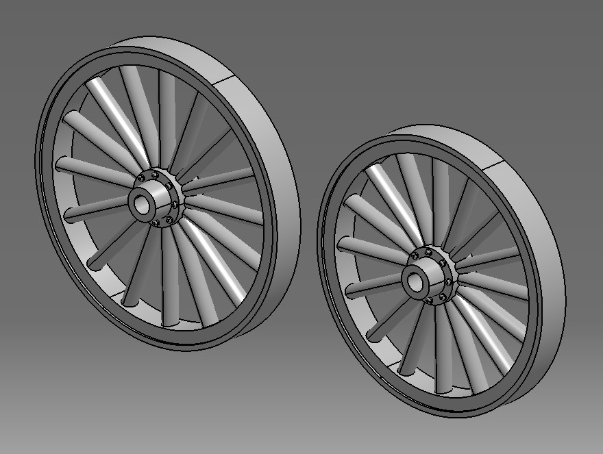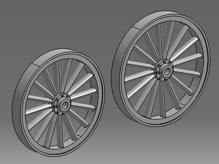 Il me fallait un jeu de roue pour celui-ci; j'ai donc modélisé ses roues au 1/87. Le chariot sera quant à lui