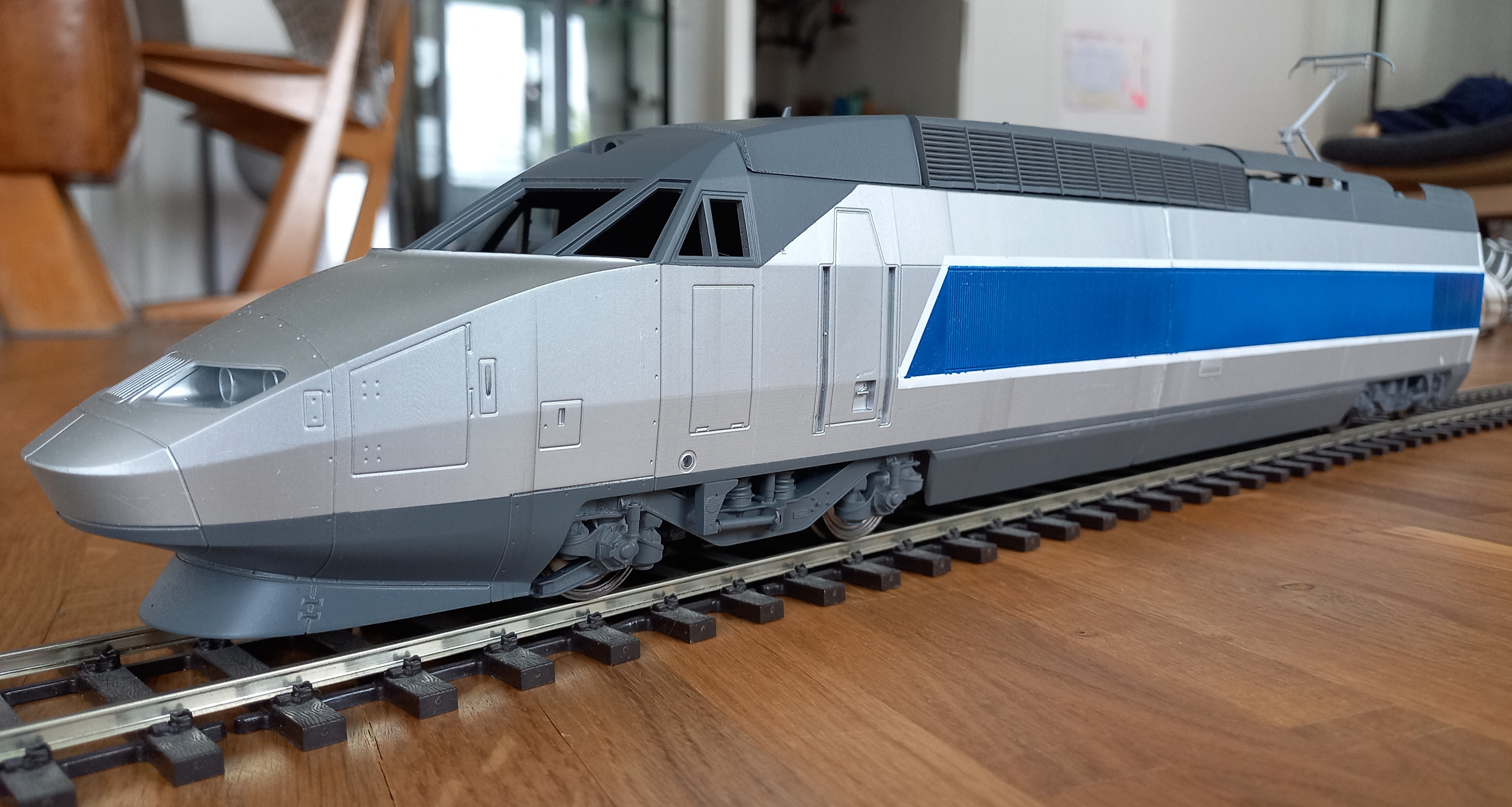 Je ne pense pas avoir un jour un TGV Atlantique en modèle réduit mais je suis admiratif de cette reproduction qui sort des sentiers battus avec un souci du détail poussé au maximum et un pantographe très réaliste. Bravo pour cette réalisation et attendons la suite.