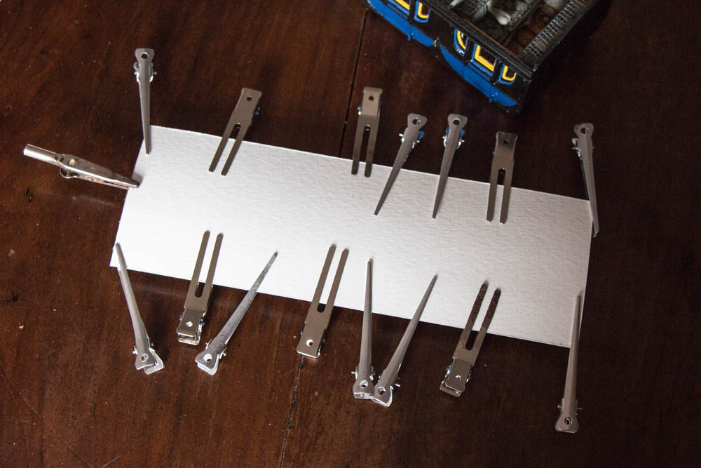 Le toit est bien avancé, les trous pour positionner les lanternes et les passe-cable (1 à chaque angle) de la cloche du tender sont percés, je n'ai plus qu'à passer commande.