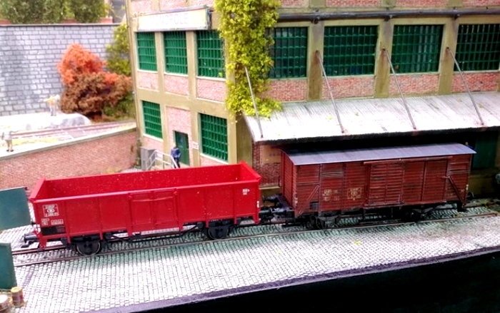 2 photos prises à l'expo de Junglister, sur un petit réseau Ho représentant Mont Sur Marchienne Zone Etat !