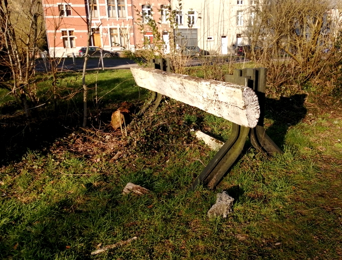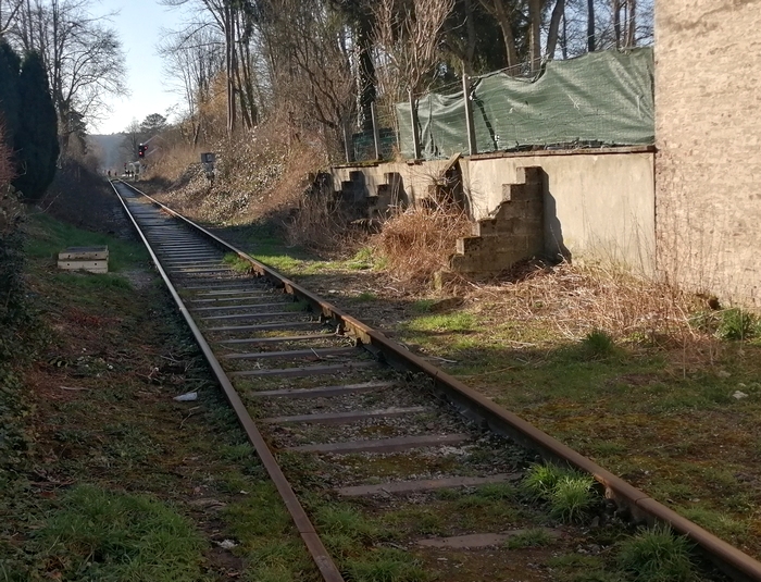 Retour vers la gare ... près de l'ancien heurtoir ... il y a un banc pour déguster au soleil des couques au raisin ... :Coeur1