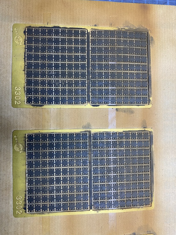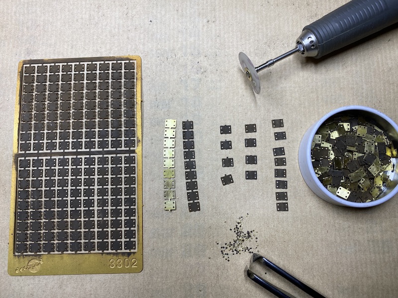 Avant de finaliser la préparation des rails, ébarbage des selles…de quoi découvrir ce qu’est un travail de bénédictin, sans être obligé de rentrer dans l’Ordre de Saint Benoît !! Et aussi, de quoi se brûler le bout des doigts qui tiennent la selle à ébarber !