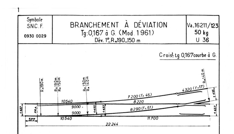 Le programme d'appareil de voie se compose d'un branchement simple, d'un branchement symétrique, d'un branchement 3 voies et d'une traversée oblique. la Tg 0167 a été retenue comme base de travail (Tg 0334 pour la traversée). La Tg0 0167 correspond en fait à un équivalent de Frog #6 aux USA ce qui est tout à fait suffisant pour un "Switching layout".