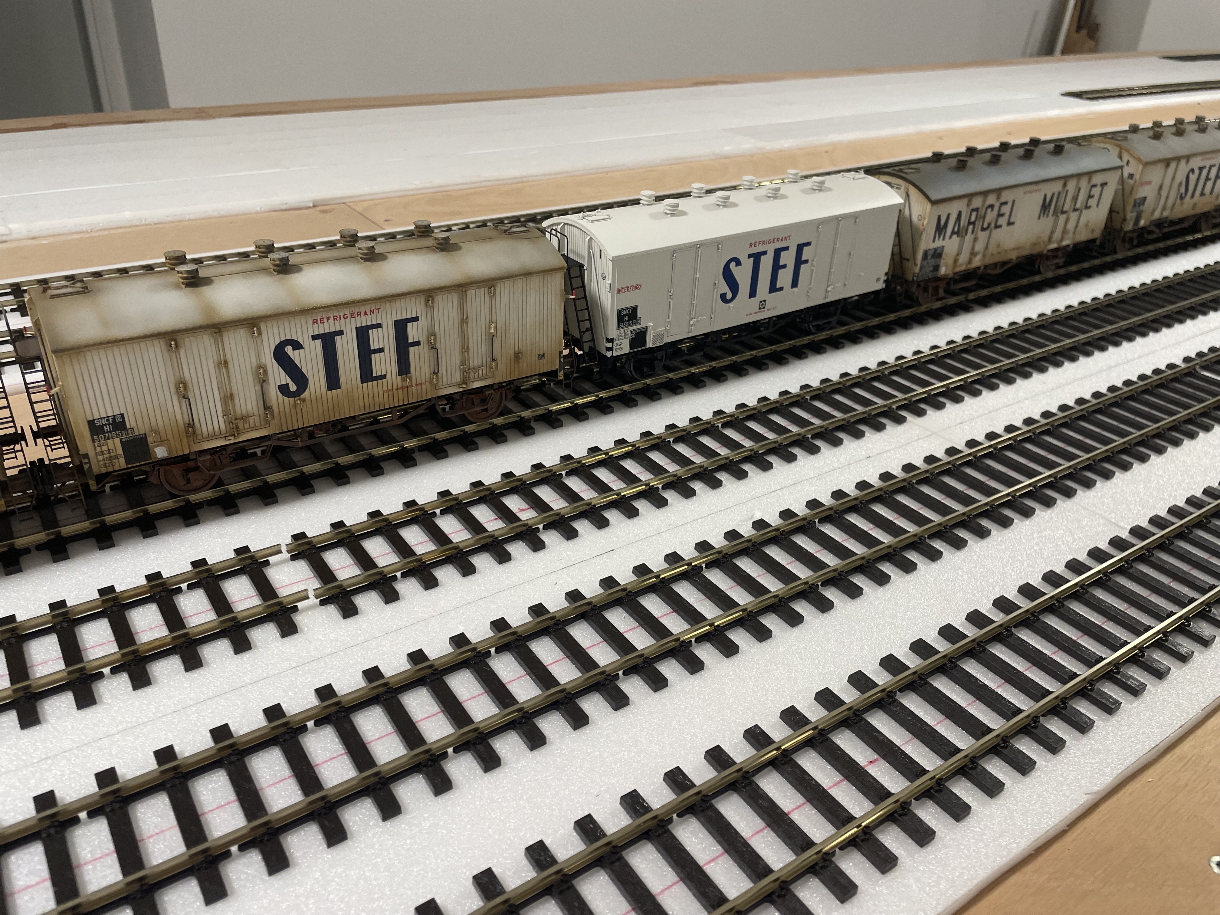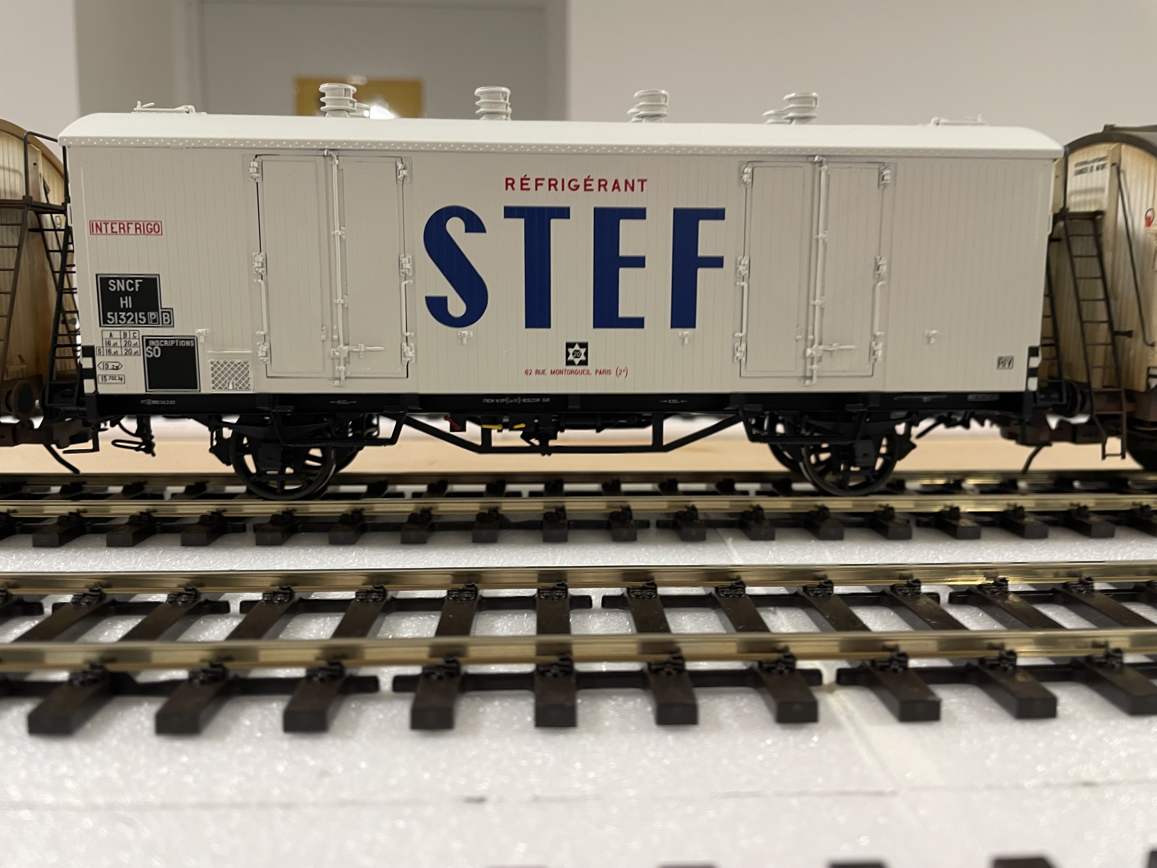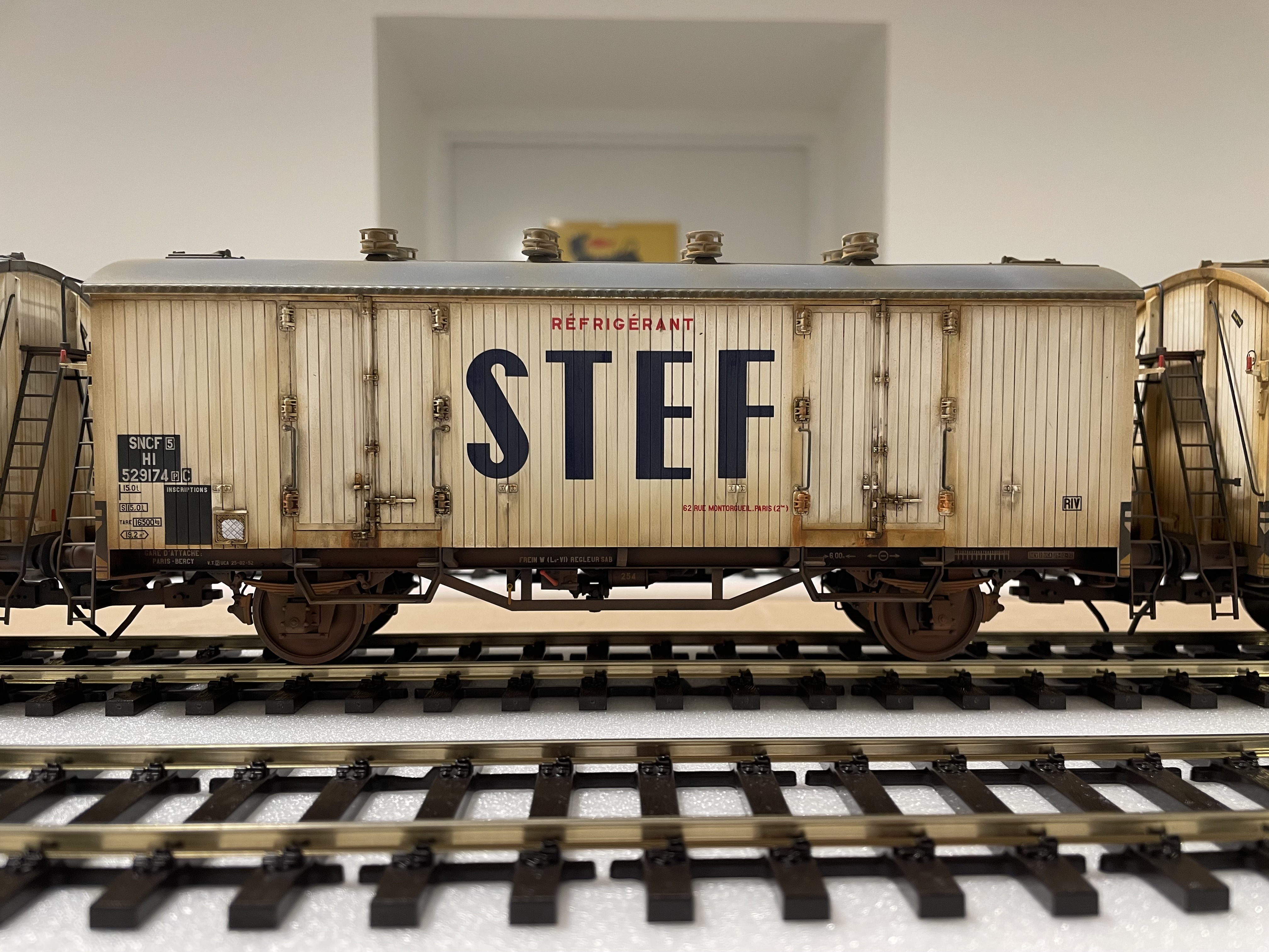 Quelques images de wagons frigo Rail 43 patinés par Franck Blondel. La guimauve au centre est un AMJL. C'est pas sa faute s'il n'est pas bronzé, je ne l'ai pas envoyé aux U.V.