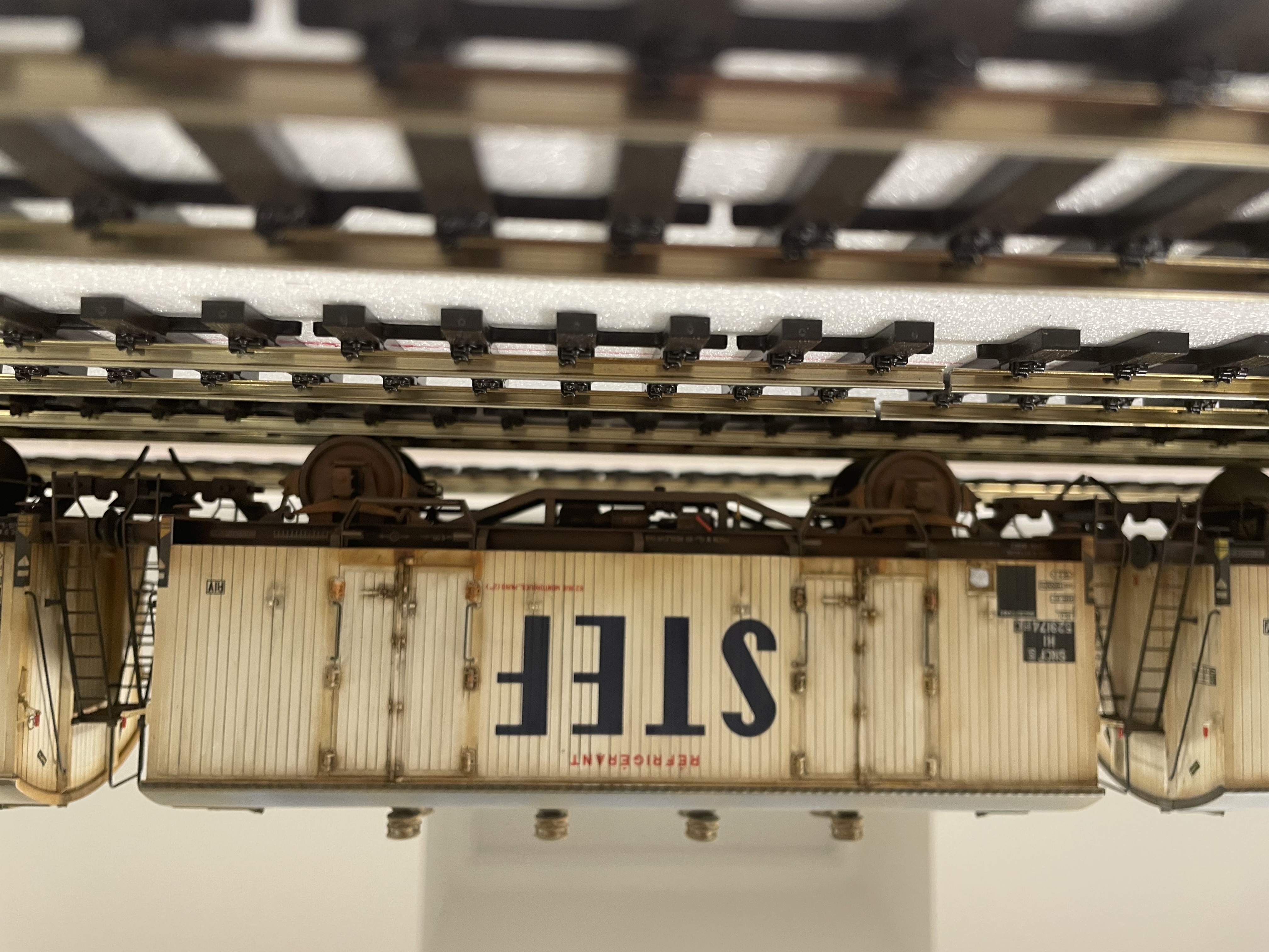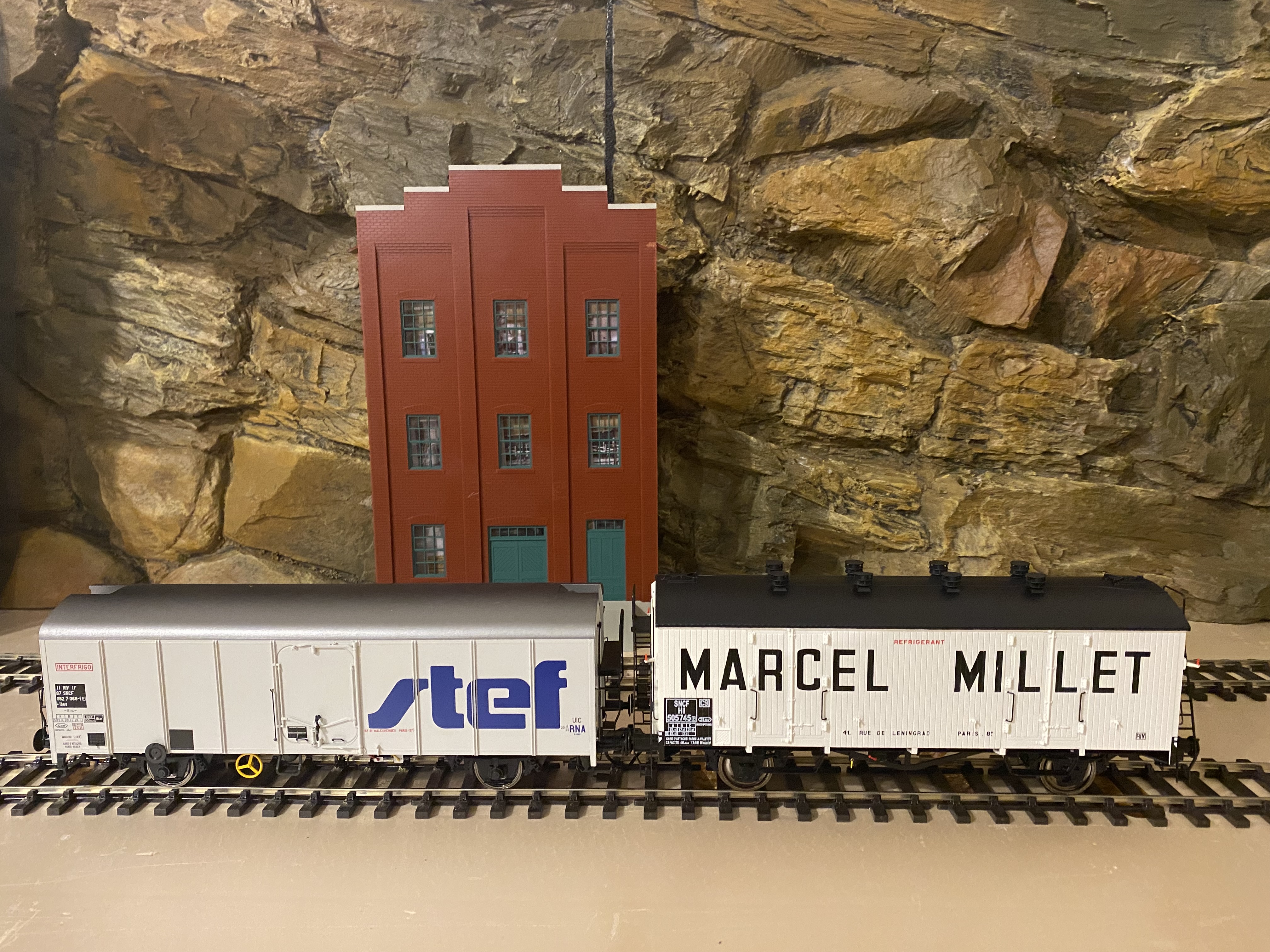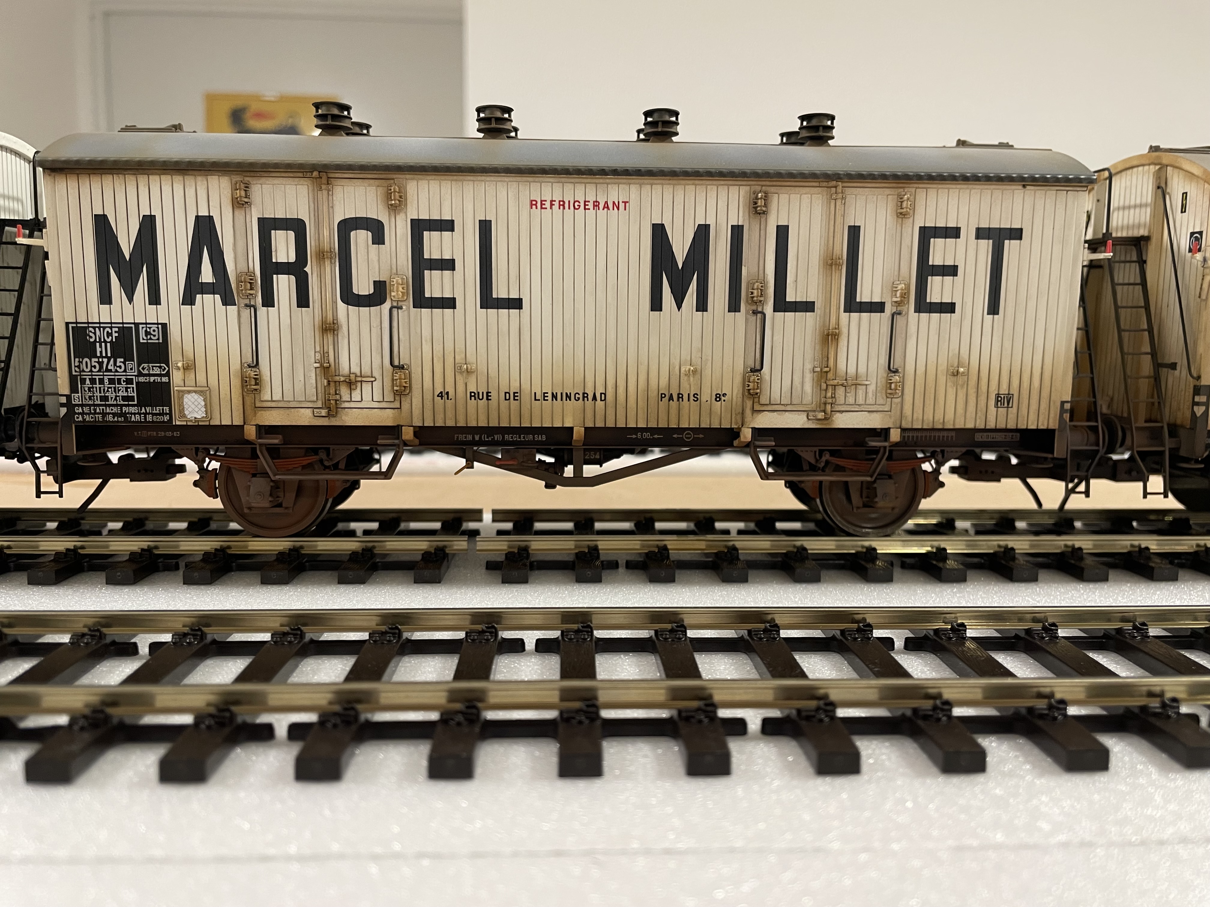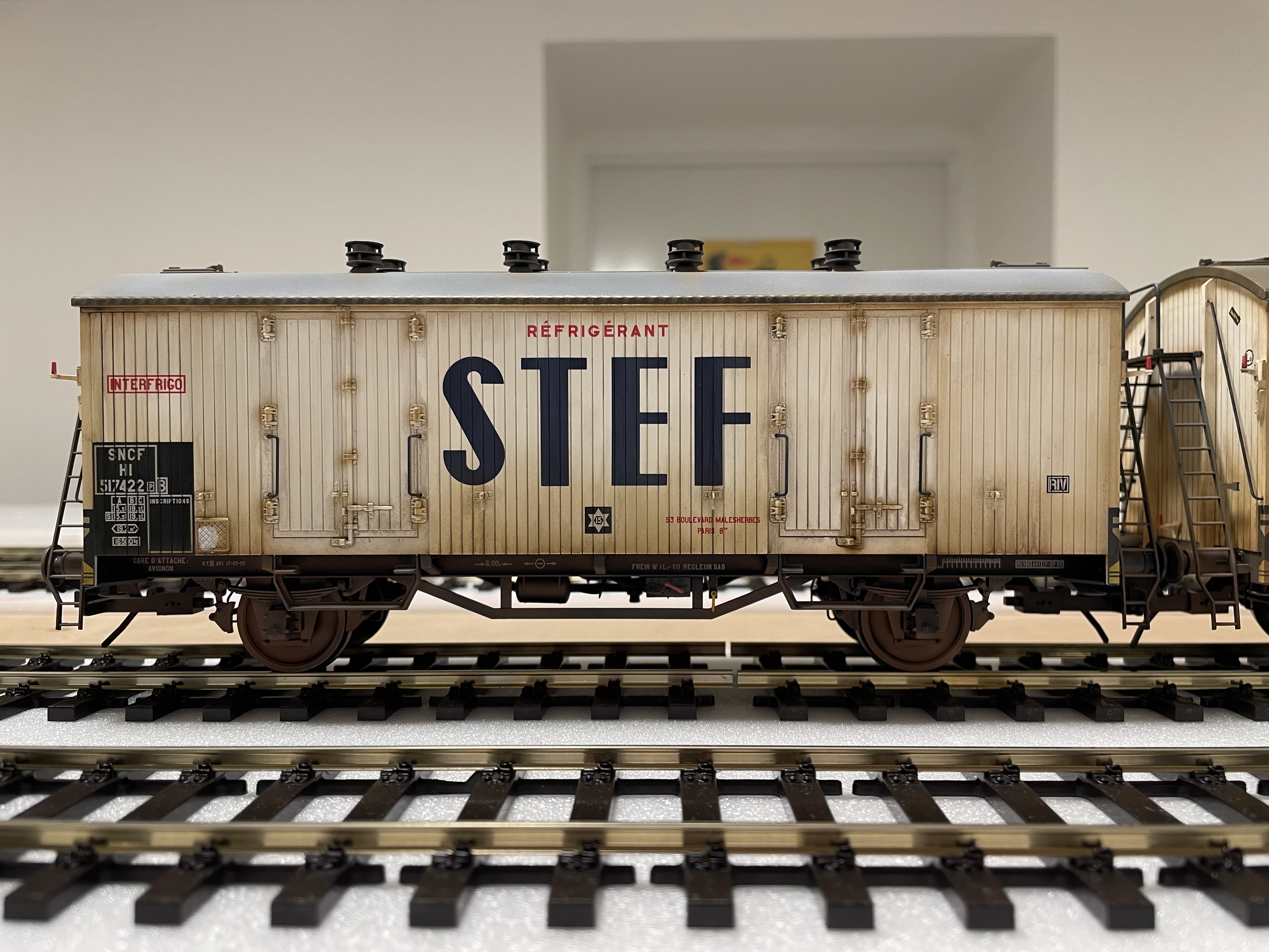 Quelques images de wagons frigo Rail 43 patinés par Franck Blondel. La guimauve au centre est un AMJL. C'est pas sa faute s'il n'est pas bronzé, je ne l'ai pas envoyé aux U.V.