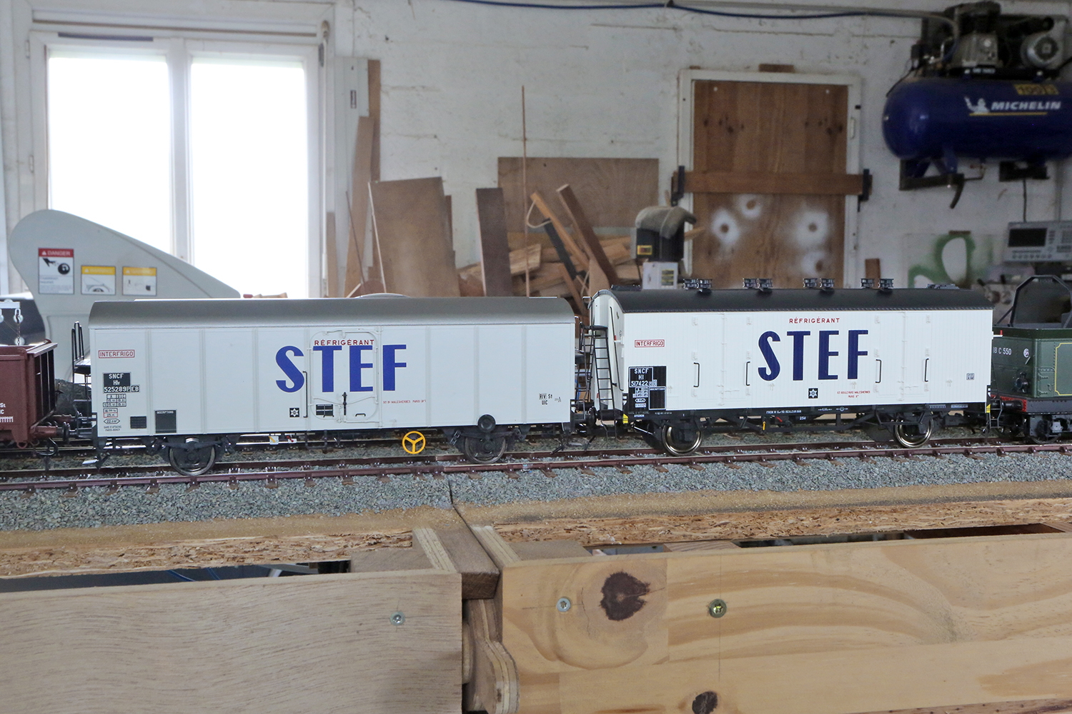 Les pièces détachées n'ont pas encore été installées. quelques wagons recevront un ou deux essieux à rayons.