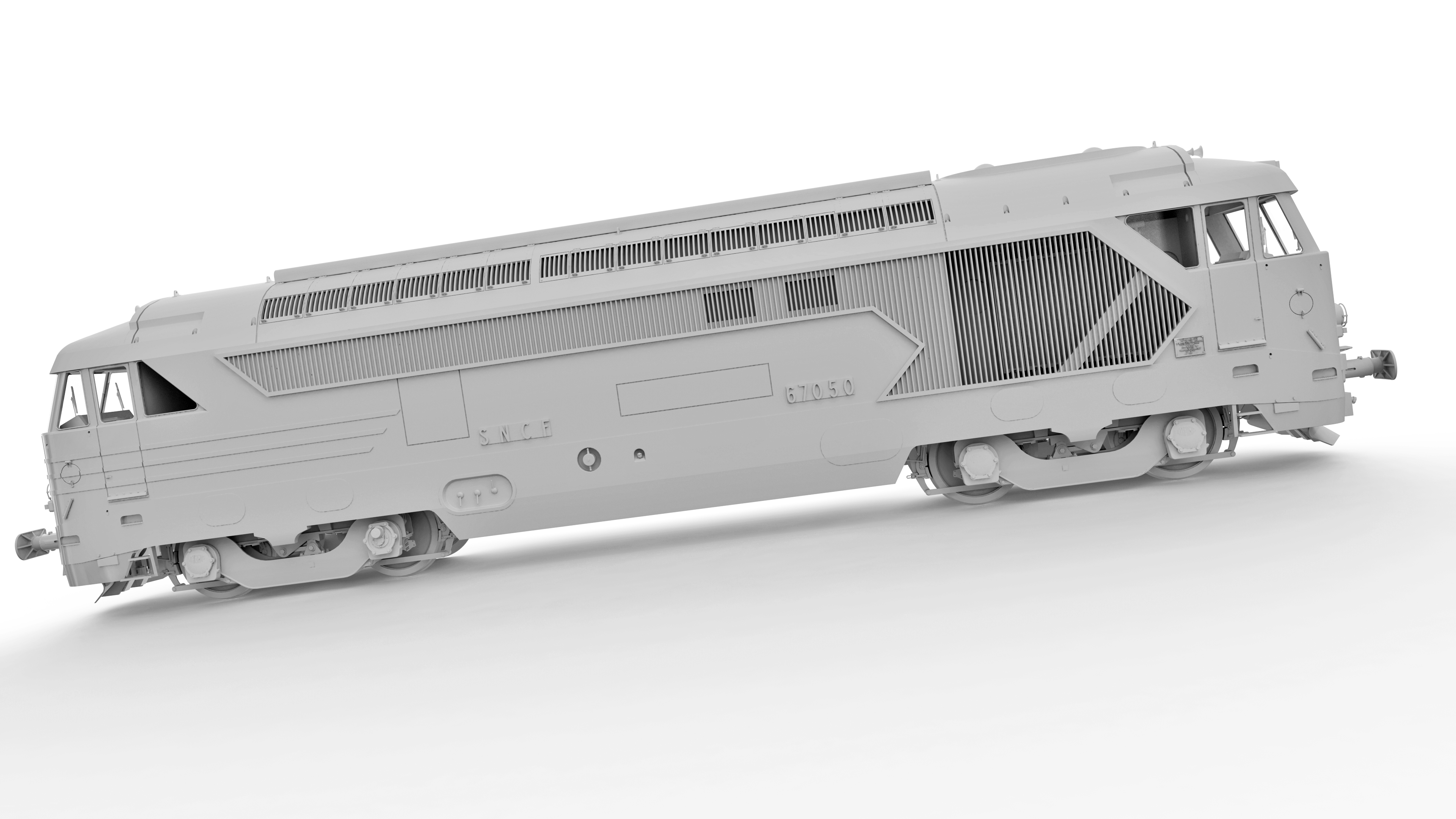 Bon, si je résume, tu as en 3D la caisse complète, les flans de bogies....Ne restent plus que le châssis et la mécanique et on a un 67000 au 1/43,5 digne de ce nom.