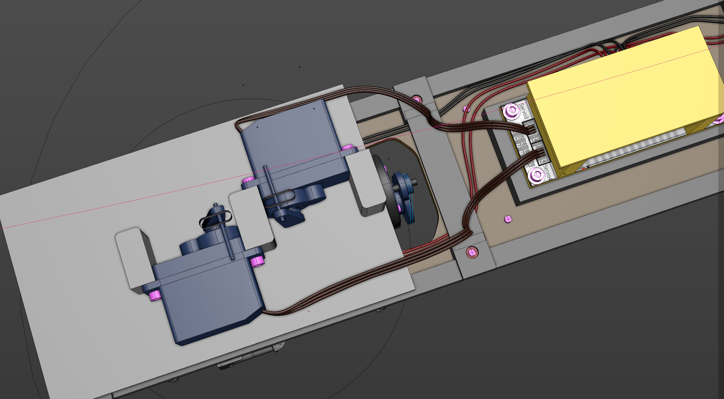 j'ai prévu ça pour le moment. Servomoteur sur tiroir... c'est juste un peu serré en hauteur, chose que je ne résoudrai qu'à l'arrivée des engrenages...que j'attends depuis octobre...