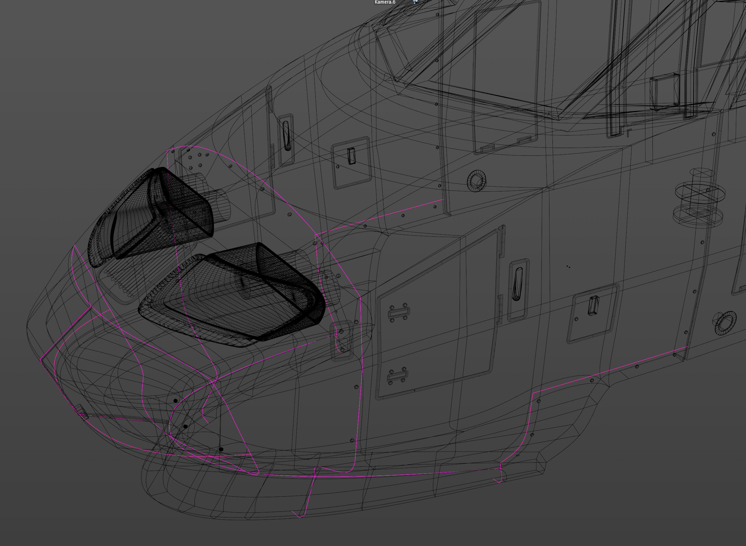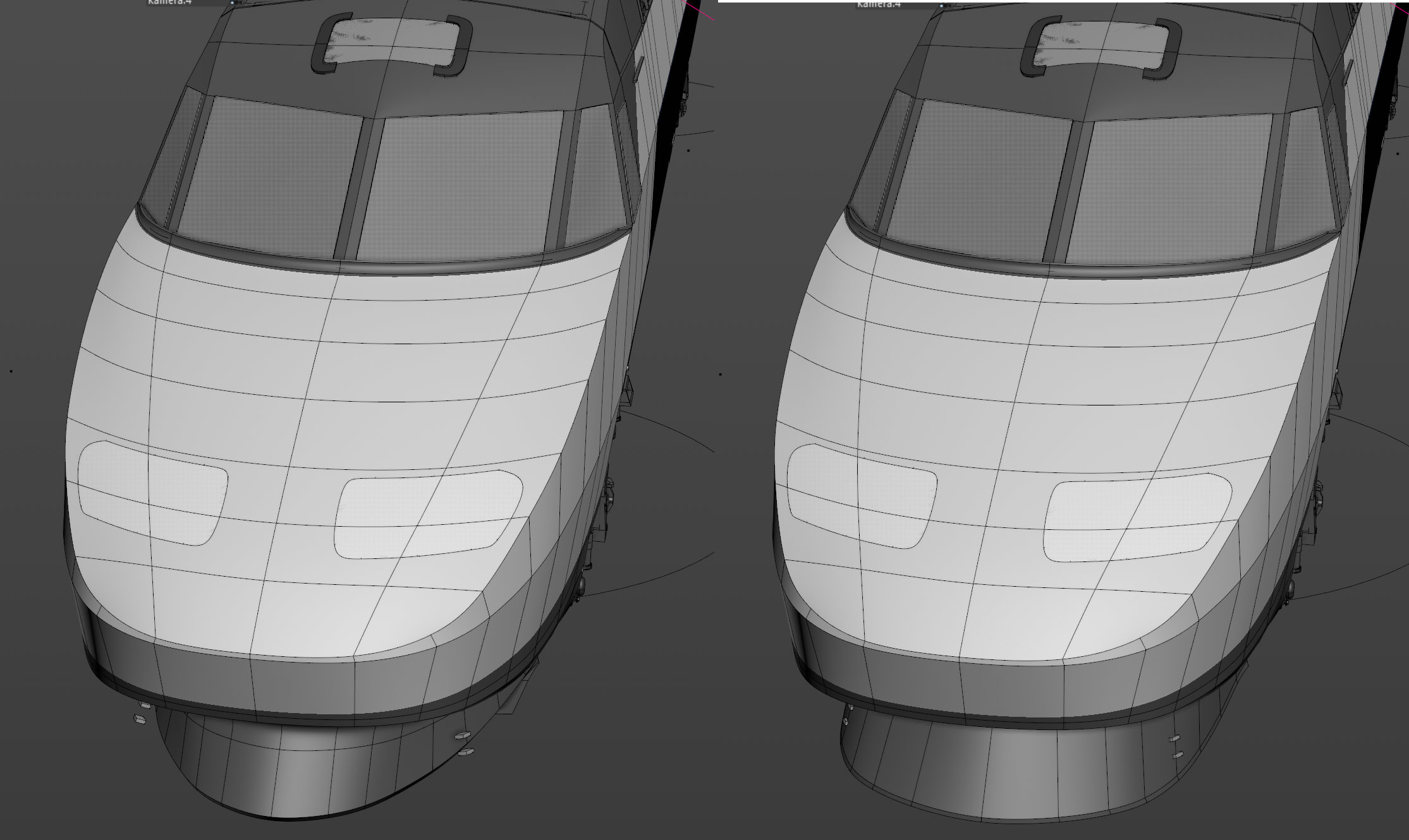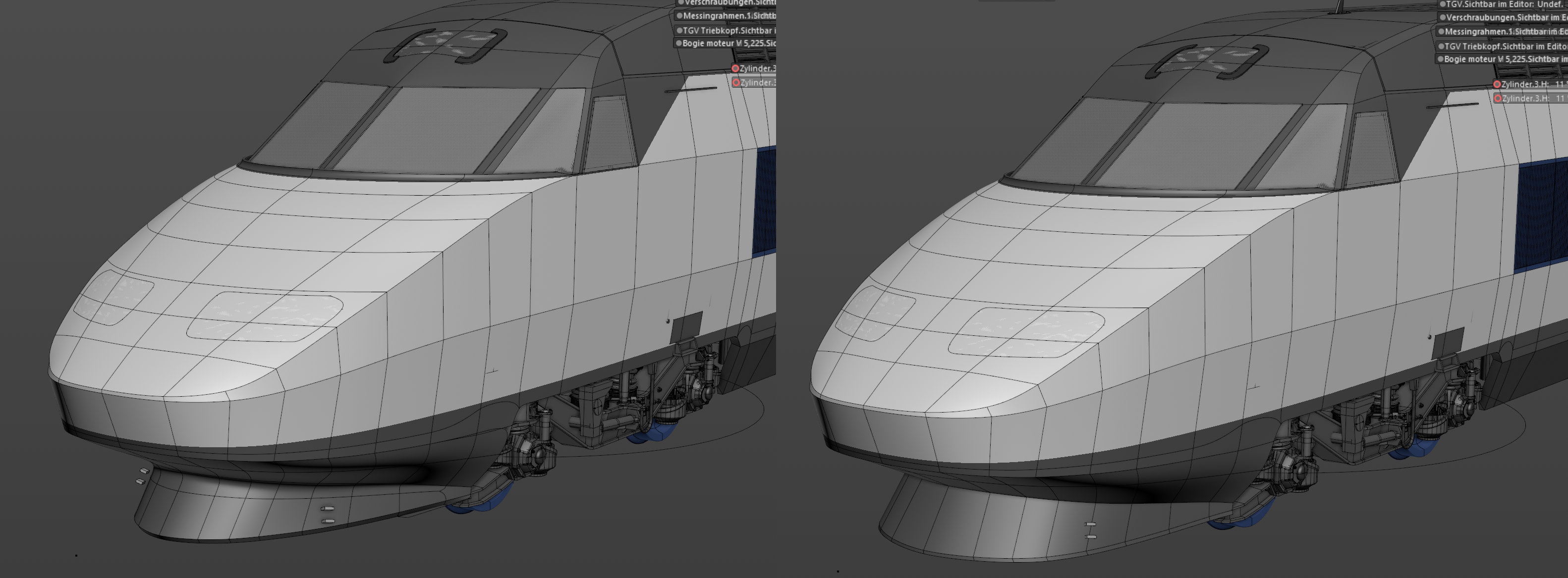 Suite à la consultation de dessins de l'étrave et de photos que j'avais trouvé je suis en train de la modifier, la forme que j'avais dessiné était trop "carrée", trop large au lieu d'être de forme parabolique. En plus en bas les deux parties du nez qui s'ouvrent sur l'attelage devraient avoir une ligne en forme de courbe pour le joint avec le reste du nez ...ma foi j'ai repoussé cela pendant longtemps, vu que ça entraine pas mal de modifications par la suite. Je trouve le résultat nettement mieux