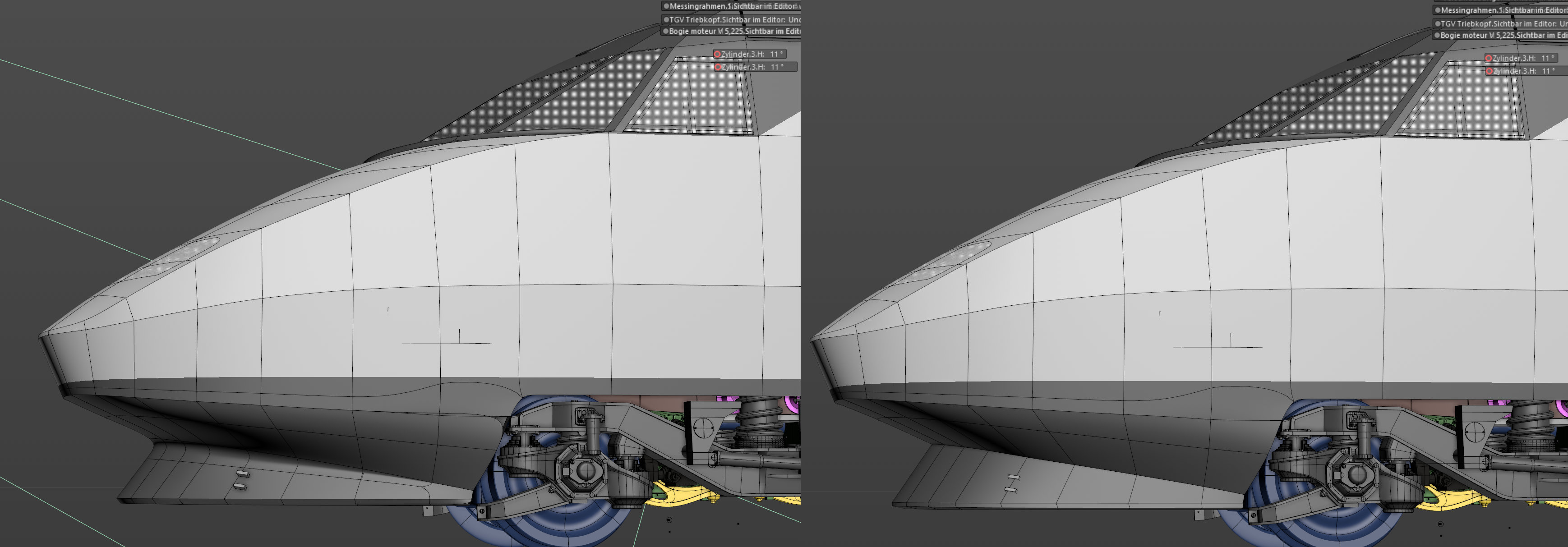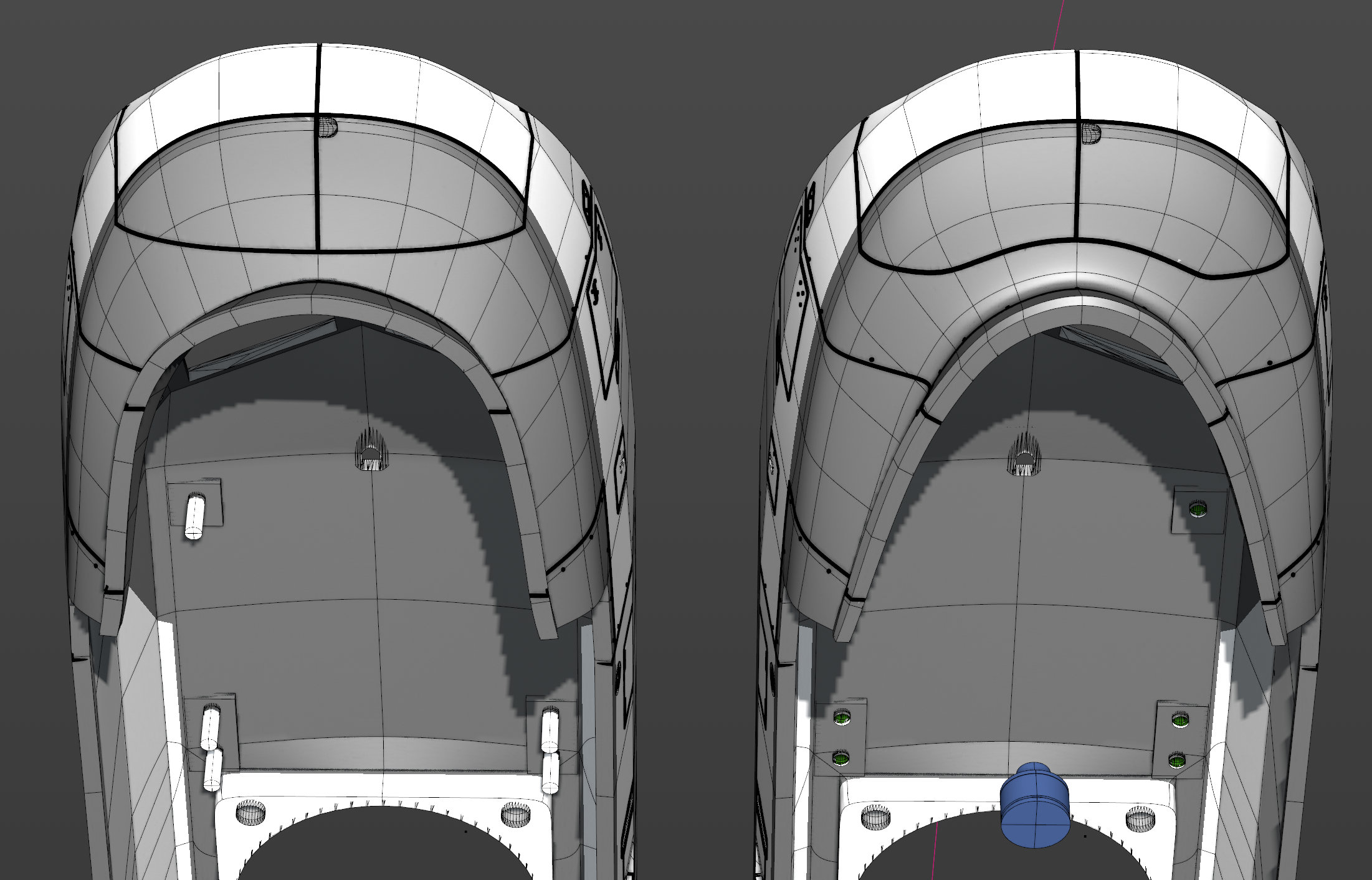 ...et mission accomplie pour les modifications incluant les lignes des joints entre les différentes pièces. En vert l'ancienne et en rose les nouvelles....