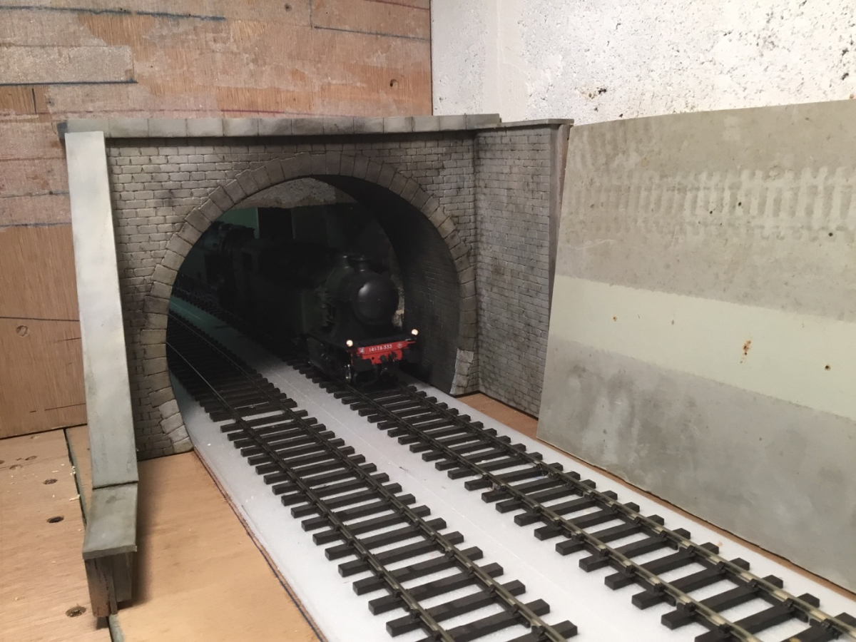 Voilà le portail du tunnel en situation. Je suis contre un mur pendant 1,30m et je vais donc devoir faire un mur de soutènement. Pas de place pour donner plus de profondeur au décor. Ça ira mieux après.