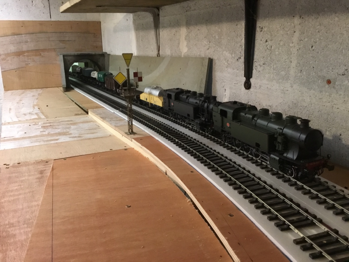 Ce tunnel annonce donc la suite du réseau. Après la rampe en courbe que vous connaissez s'ouvre sur une gare. Elle est d'importance moyenne avec 5 voies à quai. Elle aura la particularité d'etre dyssimetrique et en légère courbe.