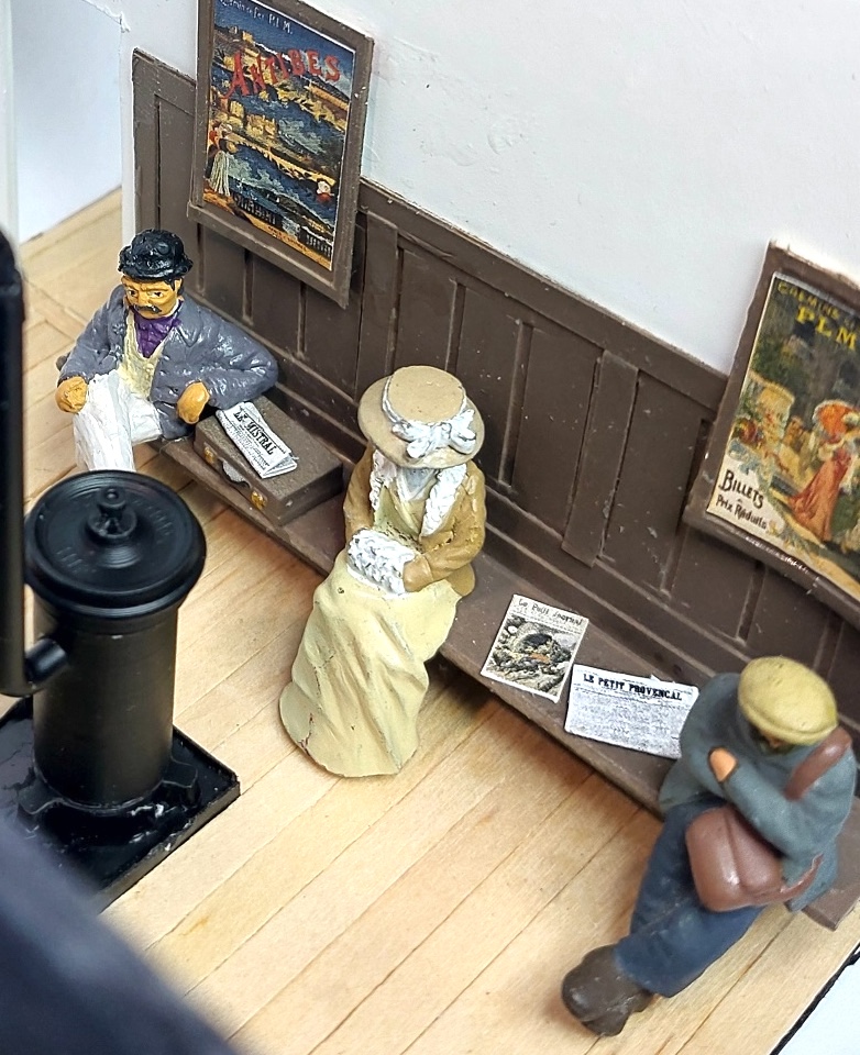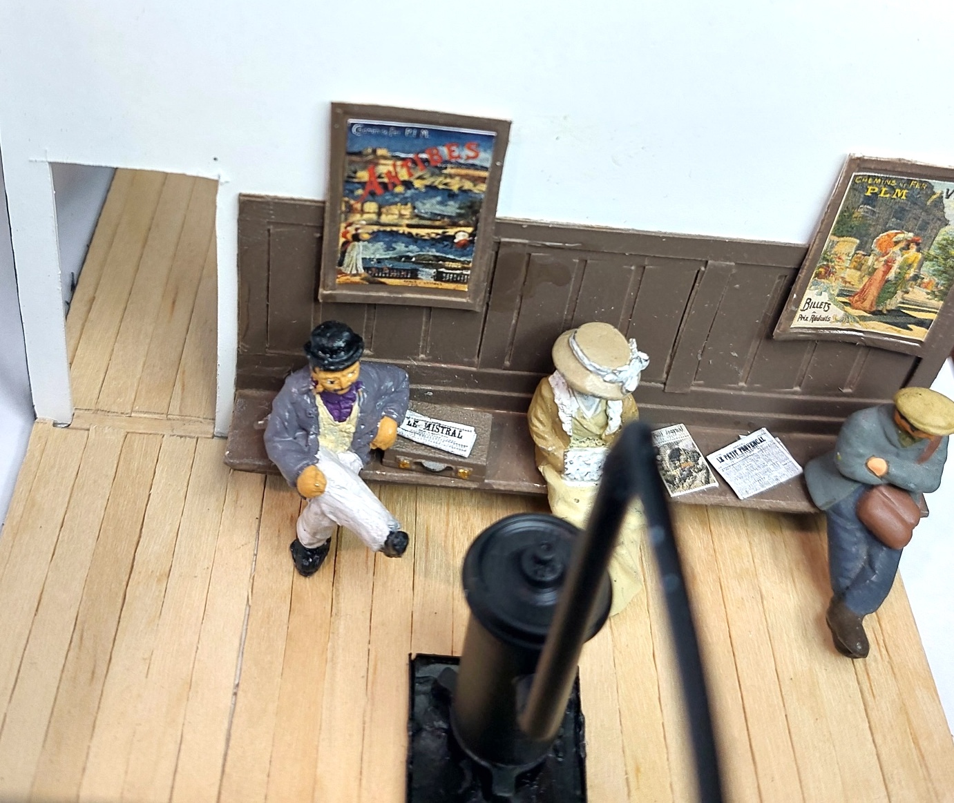 plusieurs journaux, abandonnés par des voyageurs des trains précédents, ou par ceux actuellement dans la salle d'attente trainent sur les bancs. je pense que le MISTRAL - hebdomadaire ayant paru à partir de 1891, édité à Avignon, au contenu se veut humoristique et porte essentiellement sur l’actualité culturelle et mondain - soigneusement plié à droite du voyageur près de la porte sera sans doute emporté par son lecteur.
