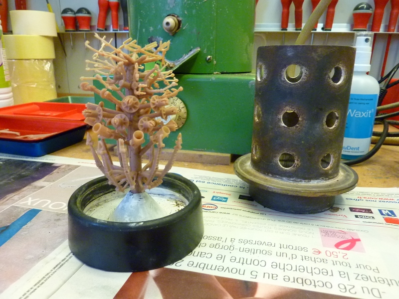 Donc, petit intermède de fonderie, pour réparer ce manque. Et, bien sur on en profite pour remplir l'arbre de pièces en cire ...