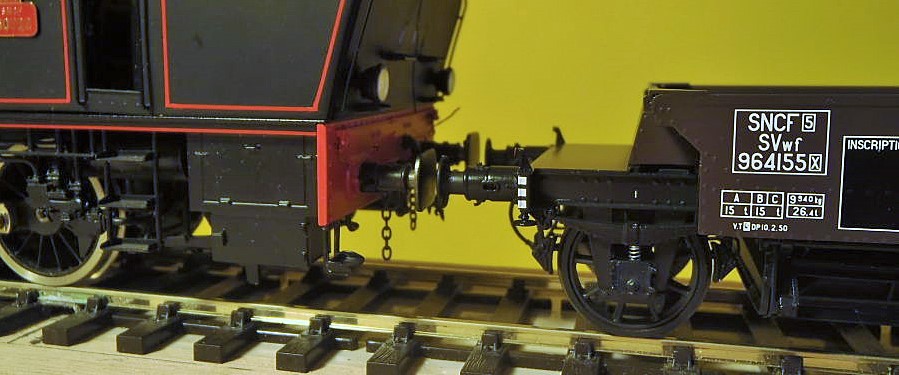 Concernant la hauteur des dits-tampons, la machine étant au 1/43.5, les wagons à même échelle sont parfaitement alignés, ce qui est d'une logique implacable ...