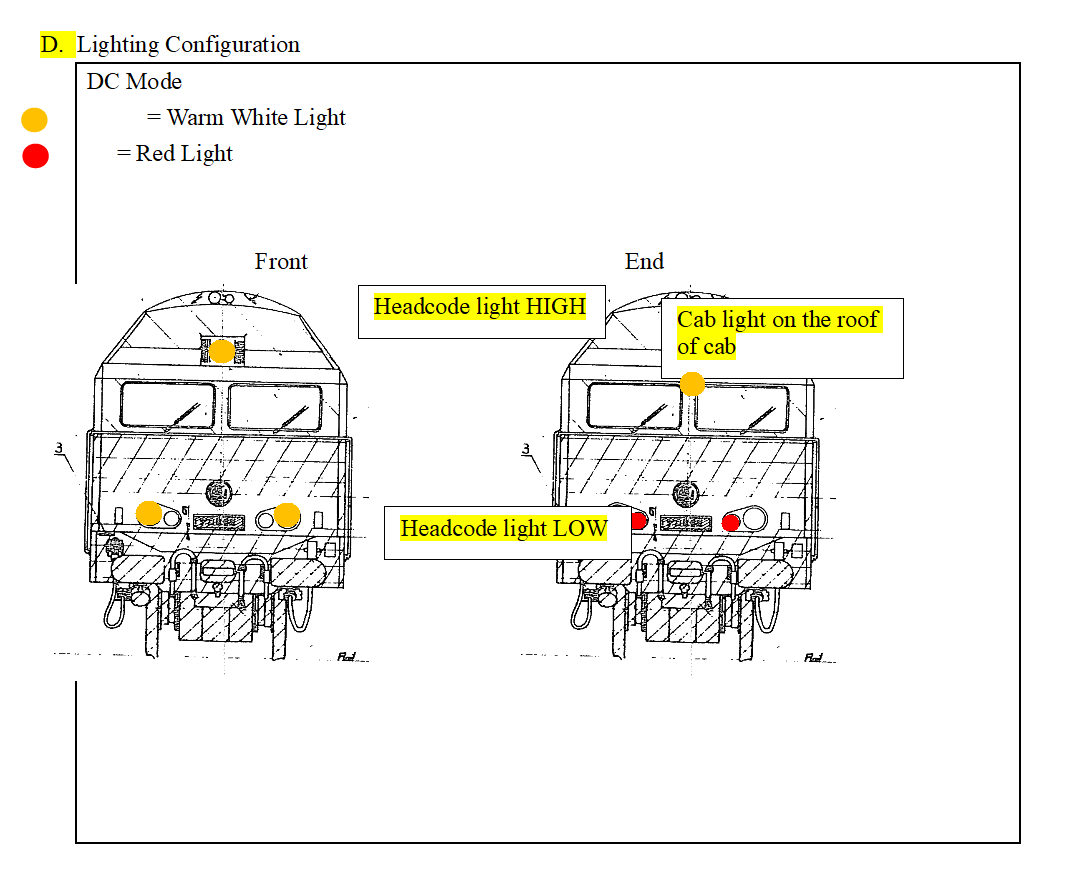 Dans le cahier des charges on avait spécifié éclairage réversible + éclairage de la cabine de conduite.