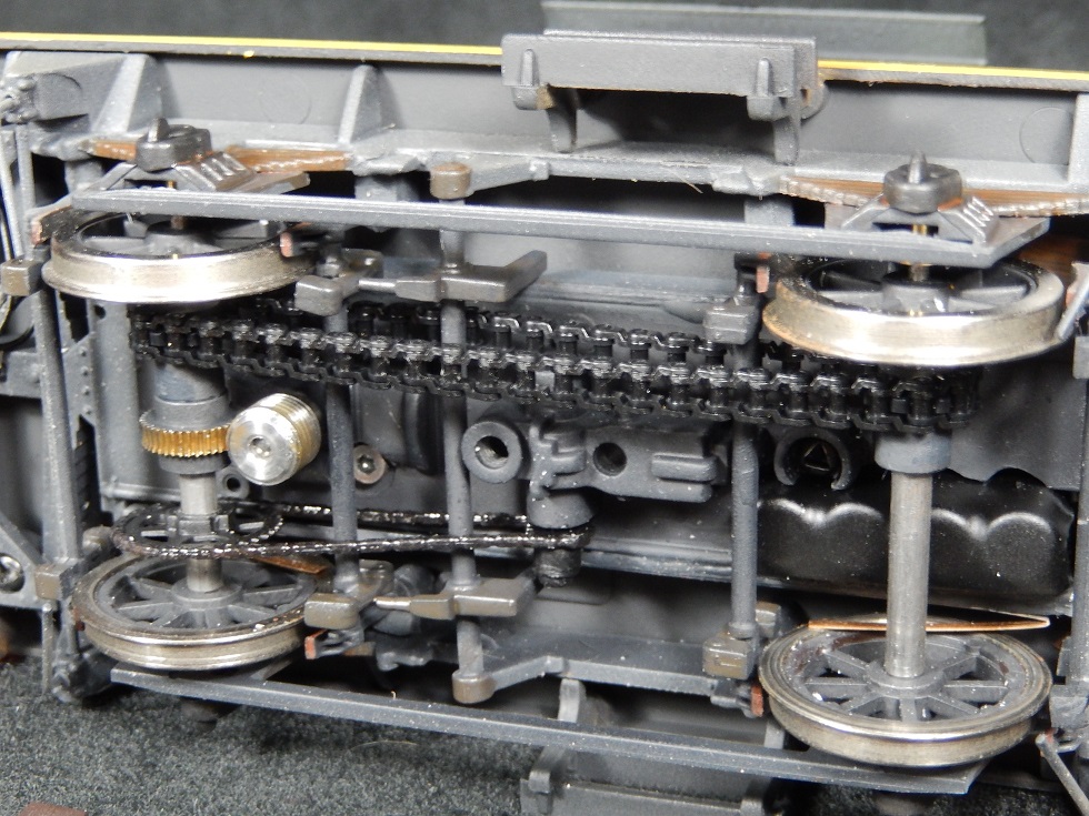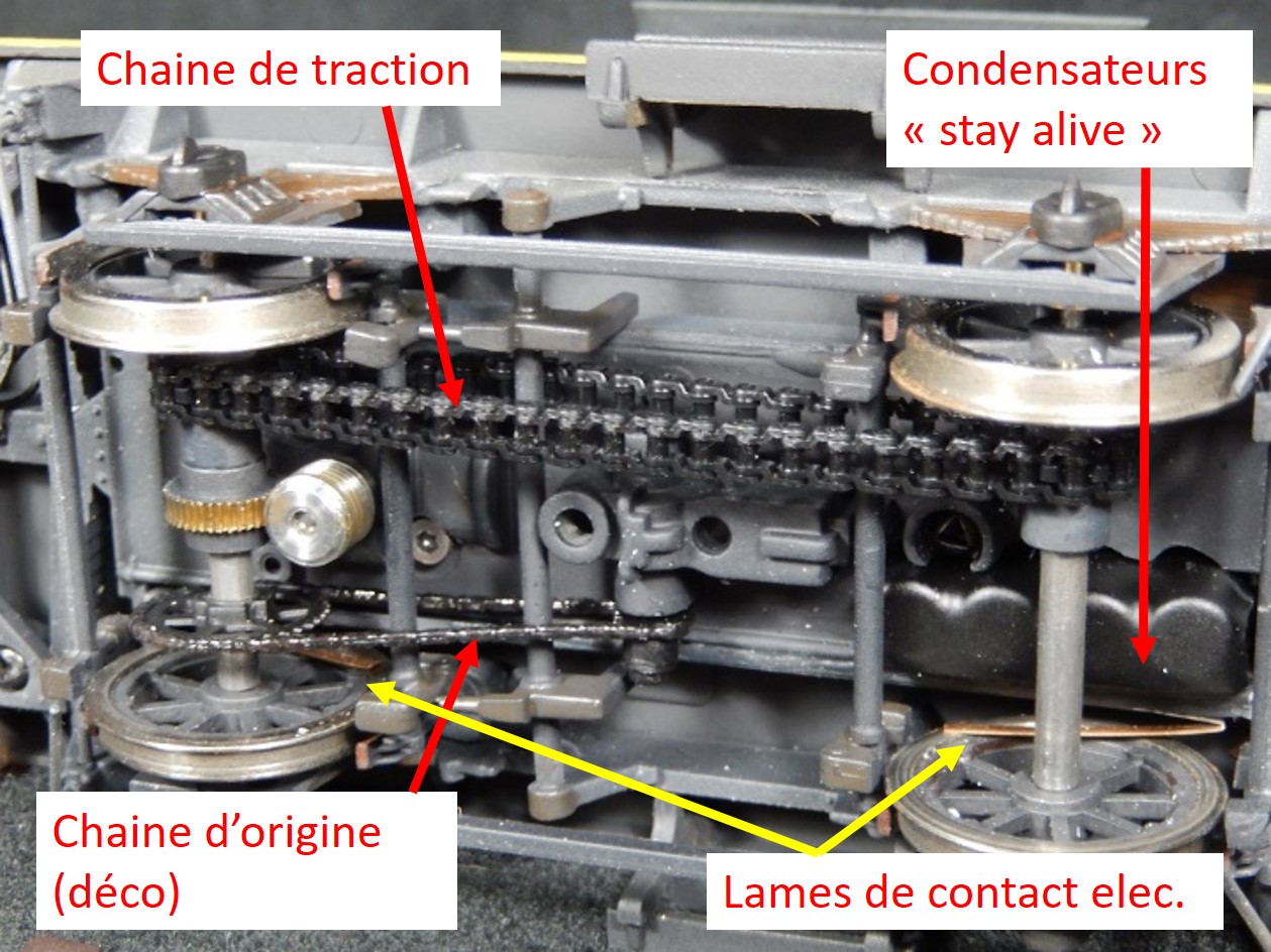 on voit par dessous la chaine qui entraine l'essieu arrière (kit 300-7006 155mm pour axes 1/8" chez Micro-modèle)