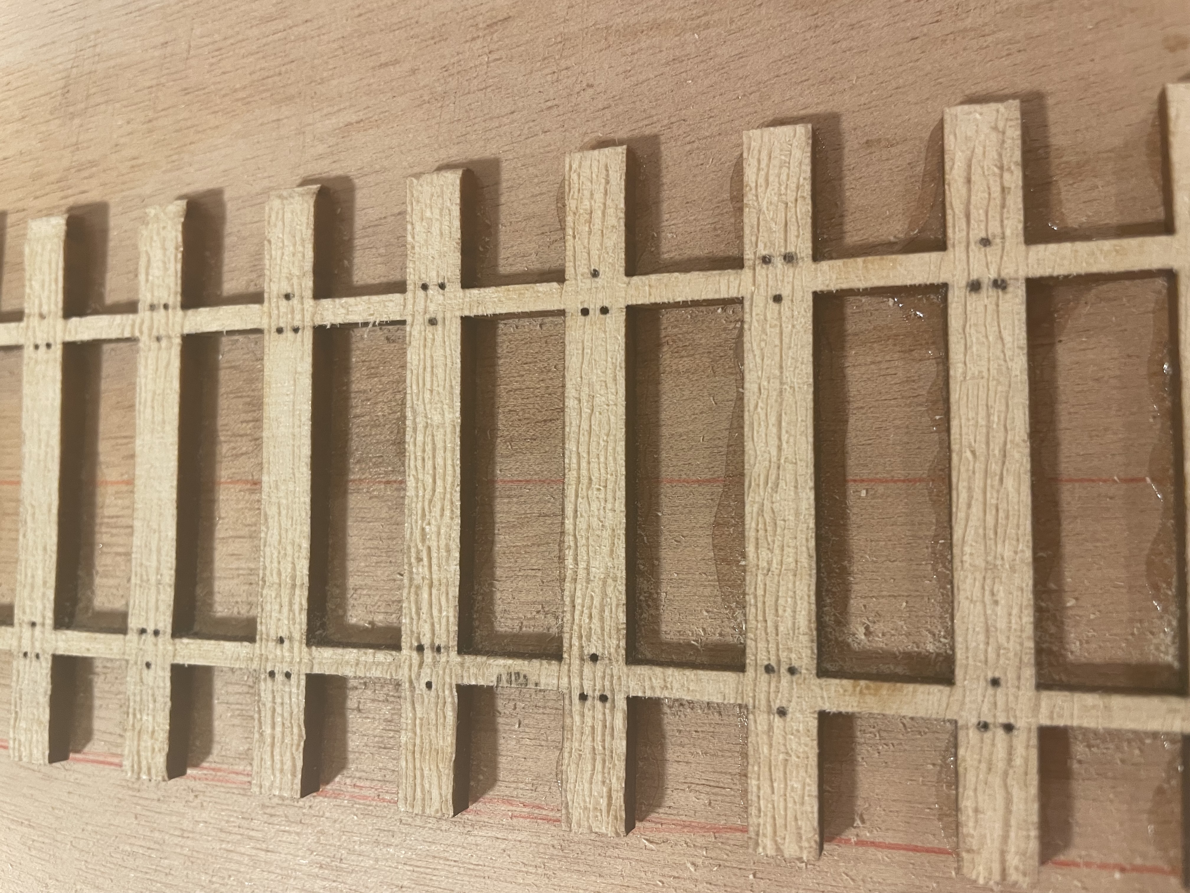La voie en kit que j'ai est bien de la AMH code 124, pose sans selles. J'ai commencé un essai sur le faisceau de garage pour tester les méthodes de vieillissement et de coloration.