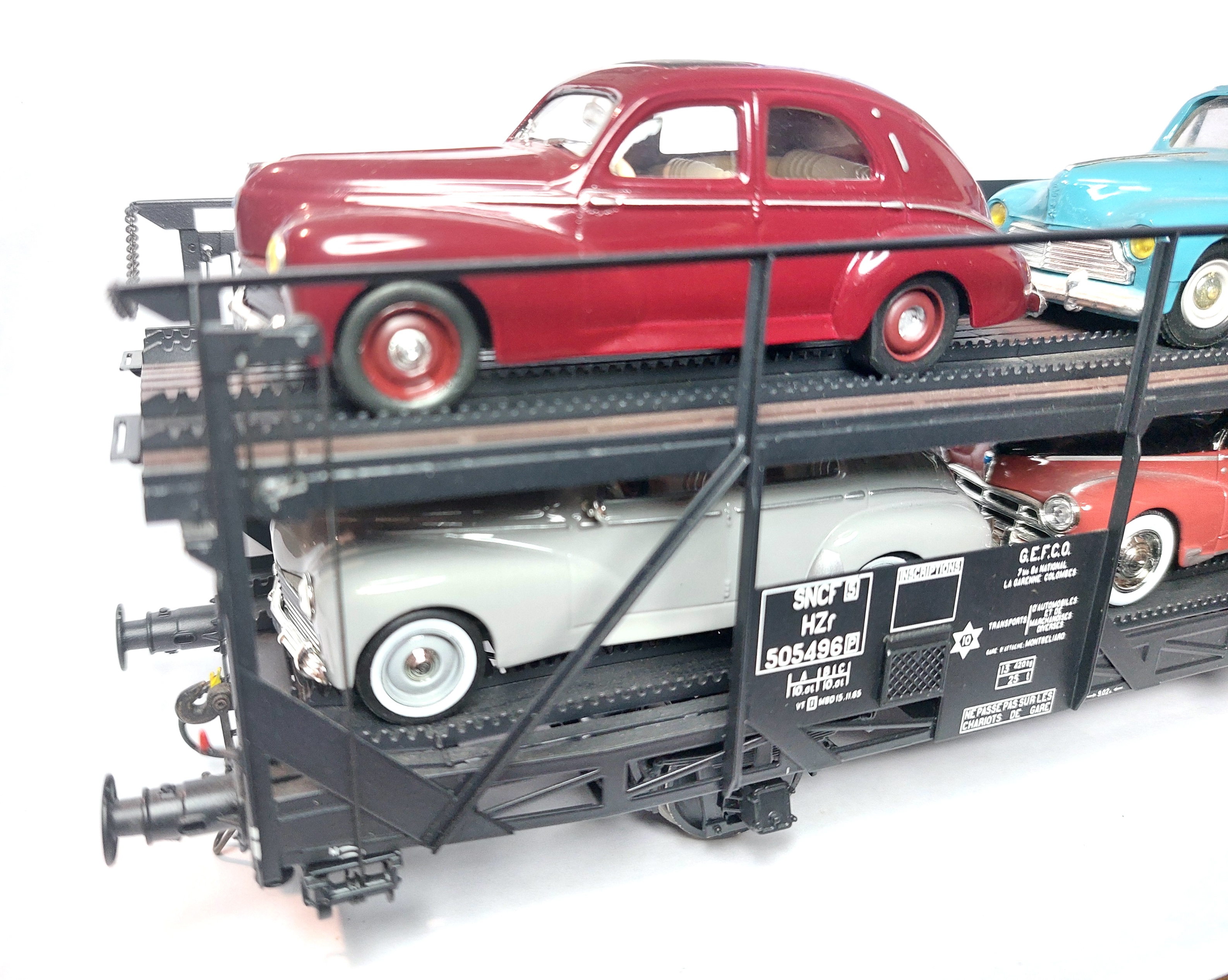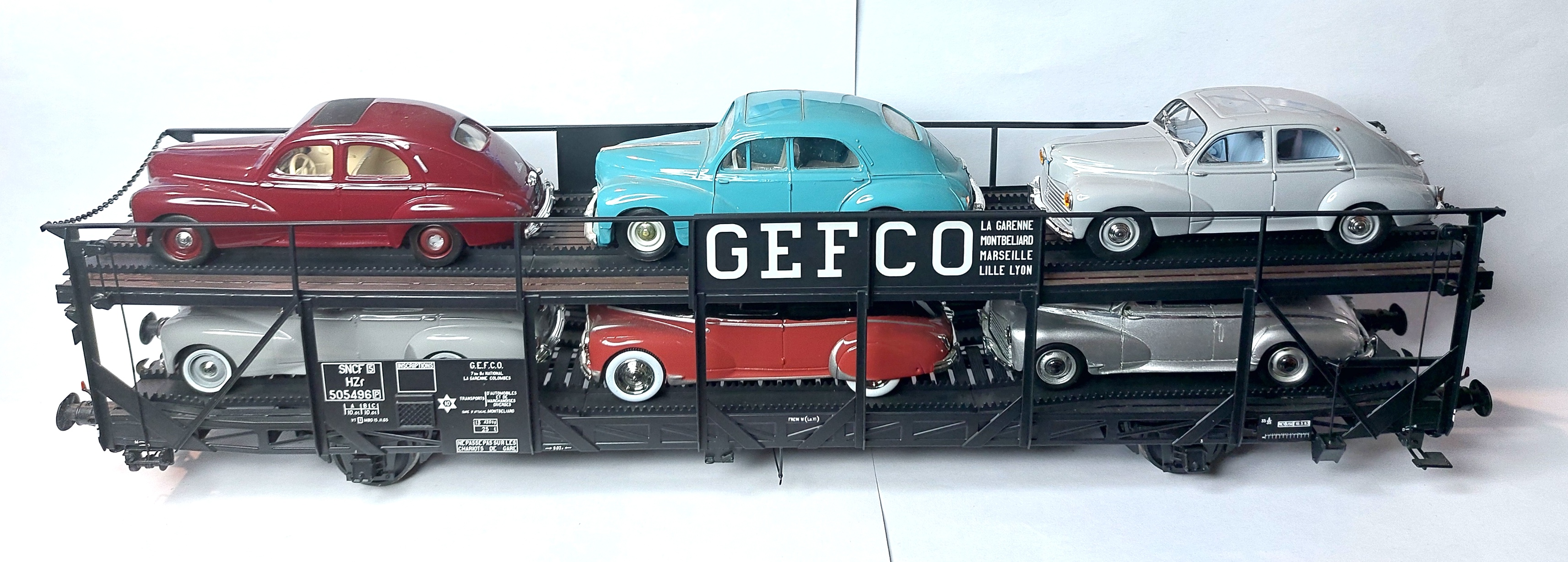 Exceptionnellement, c'est pour moi du matériel qui n'est pas "anciens réseau", mais chacun sait que GEFCO est le transporteur de PEUGEOT depuis des lustres pour ne pas dire toujours ! Je pense que je n'ai plus à préciser être amateur de PEUGEOT en modèles réduits