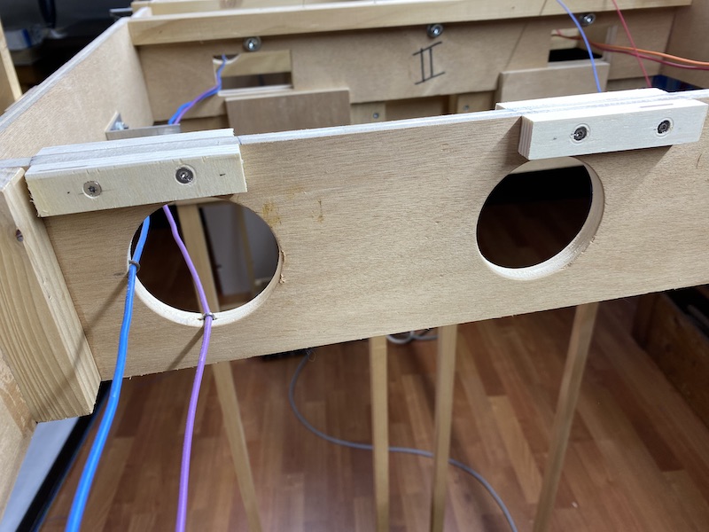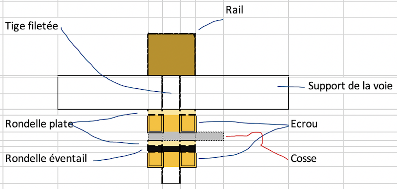 J'ai utilisé deux diamètres de tige filetée : 1,8 mm pour le rail en Om, et 2,9 mm pour celui en O.