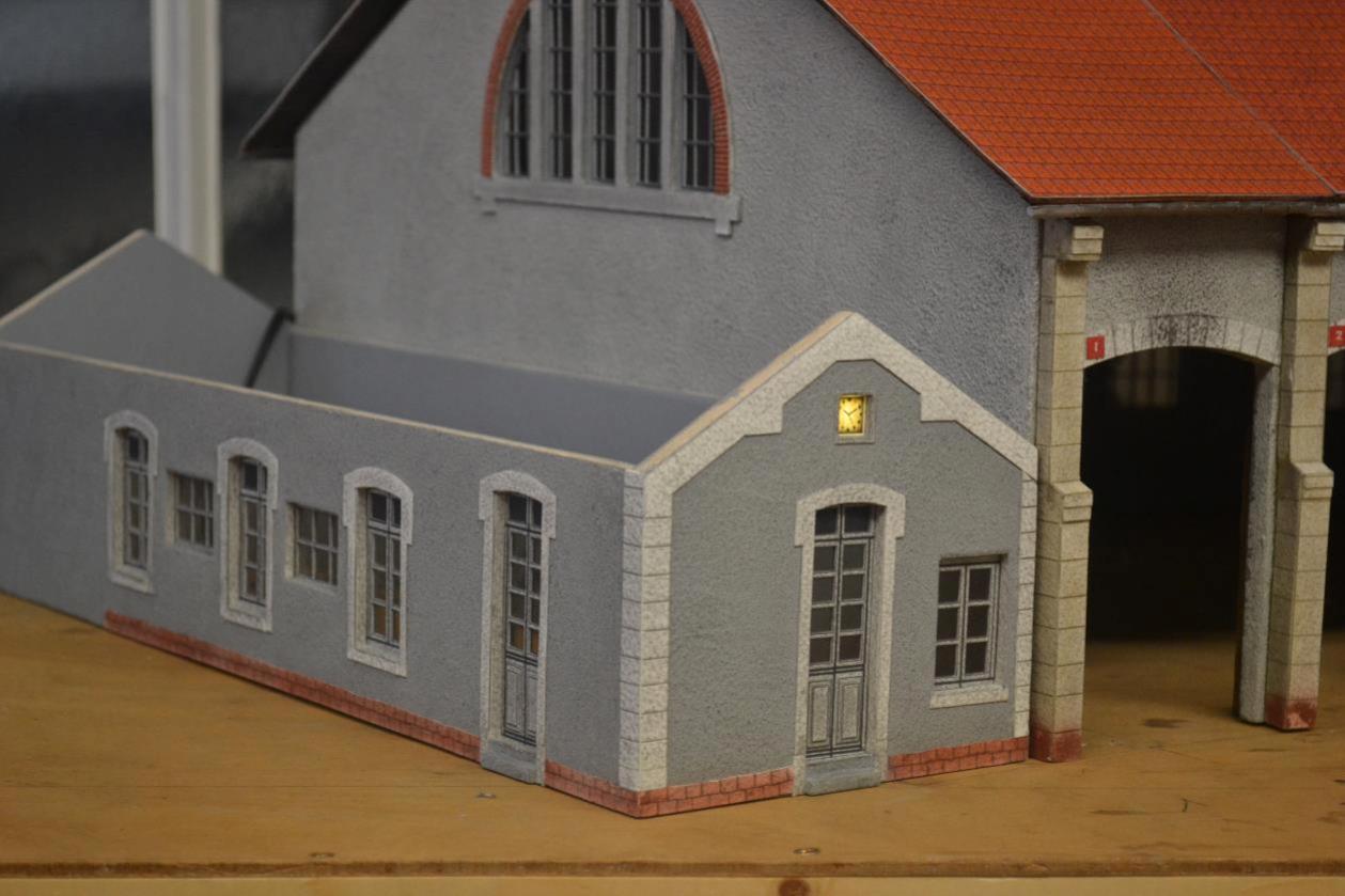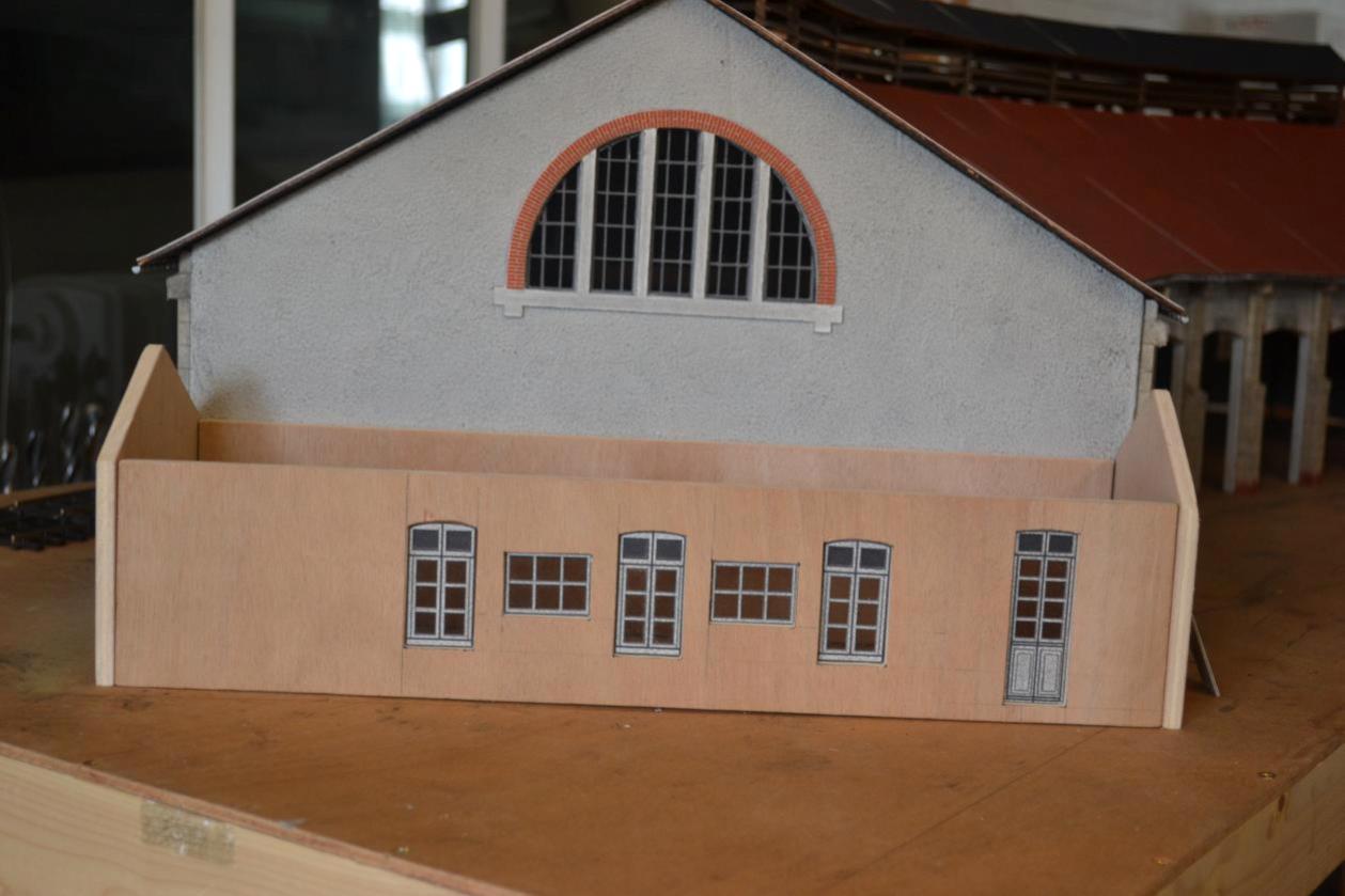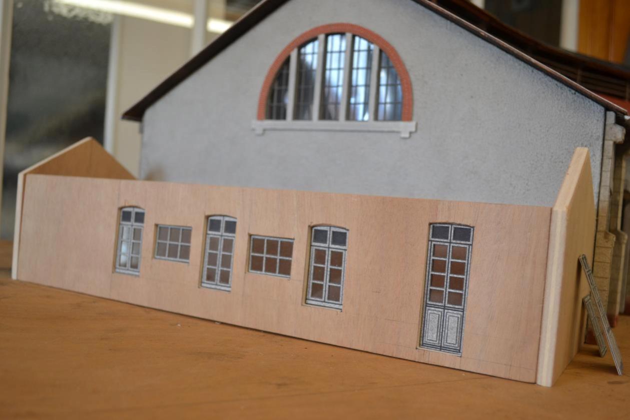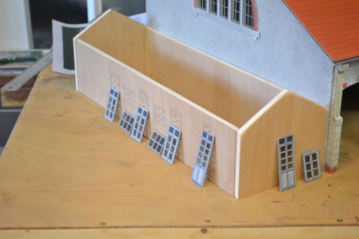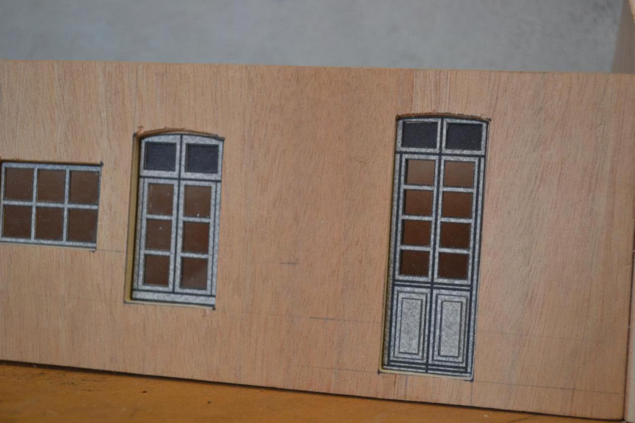 Je viens de commencer les bureaux qui jouxtent la rotonde. Les faces sont découpées et les portes et fenêtres sont prêtes.