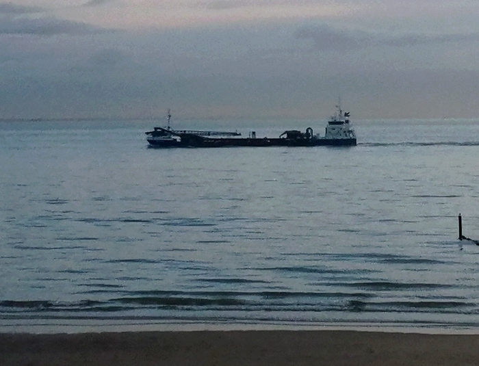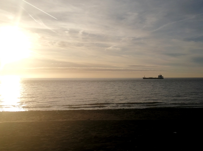 Et puis balade au soleil ... couchant, avec les cargos qui longent les plages ...