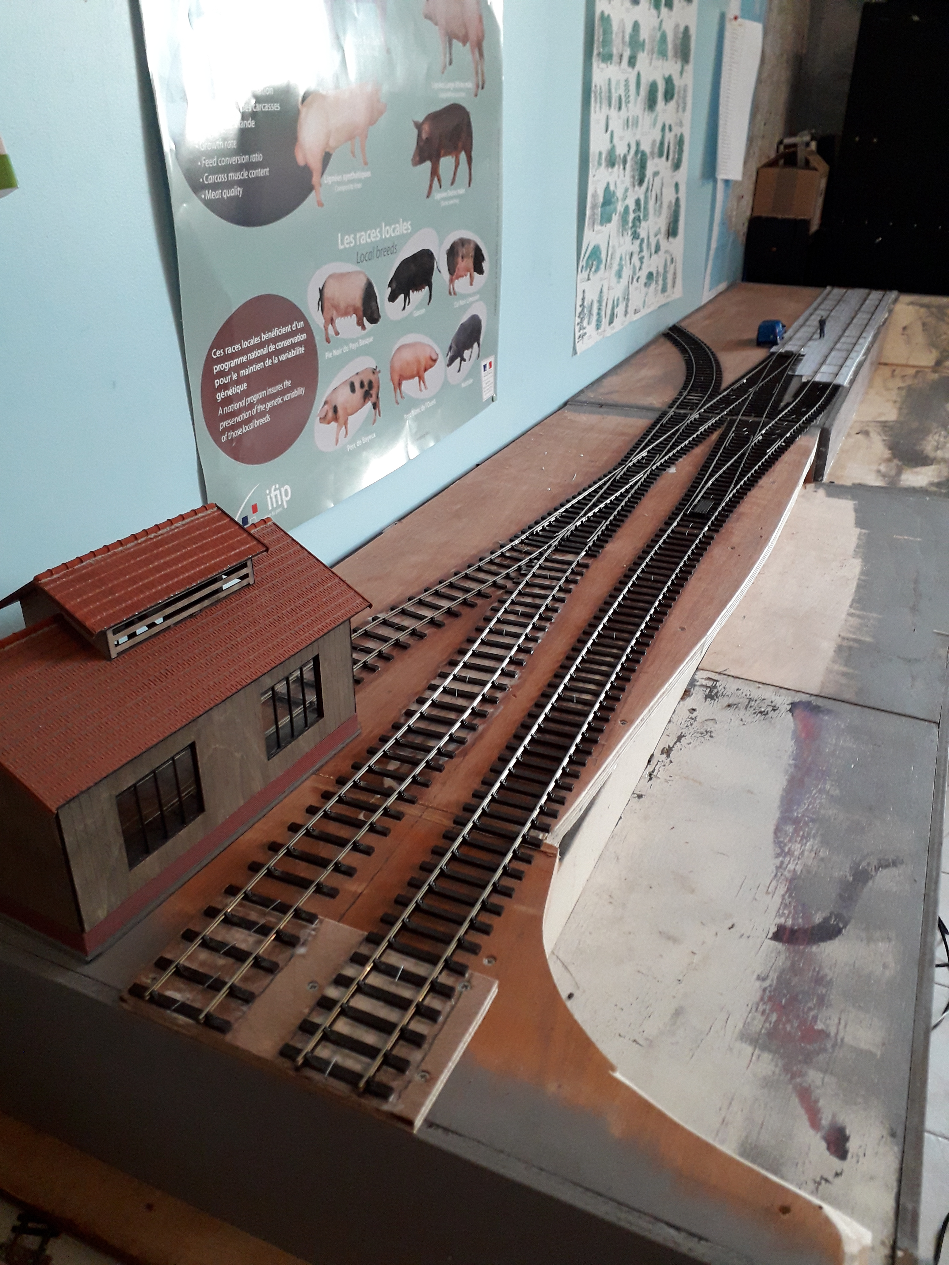Ah si avant de remballer, j'avais fait la menuiserie et la pose de la voie du réseau (hors coulisse qui viendra à gauche). Ce n'est plus un projet de sortie de gare...