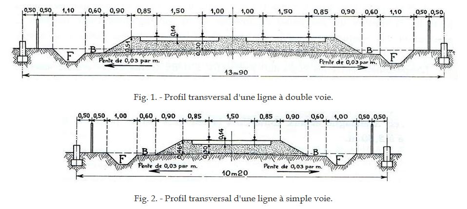 pour ma part, par esprit pratique et quelques expériences, compte tenu que les traverses mesurent habituellement 60mm, je laisse 1cm entre le bout de la traverse et le bord du quai (bas), et 2cm entre les deux traverses quand la voie est dédoublée. cela me fait une plateforme de 80mm par voie, juxtaposables... bien entendu, si je veux laisser un espace pour une piste, un refuge ou autre, j'écarte ces deux couloirs!