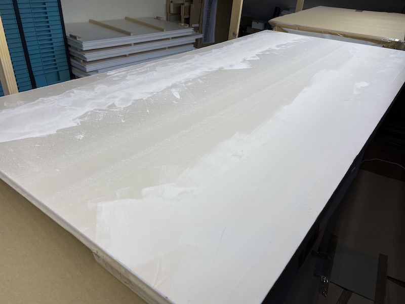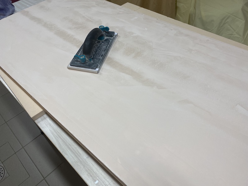 qui sera suivi d’un deuxième rebouchage des imperfections et du ponçage définitif avant peinture.