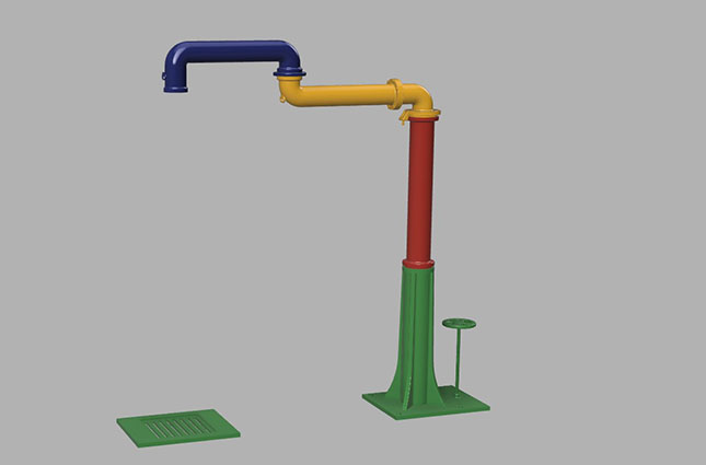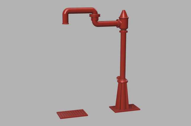 Une grue à eau à col double type Nord et Ouest (Cf. Loco Revue n°409): Le tout est composé de 4 pièces à assembler et d'une grille d'évacuation.