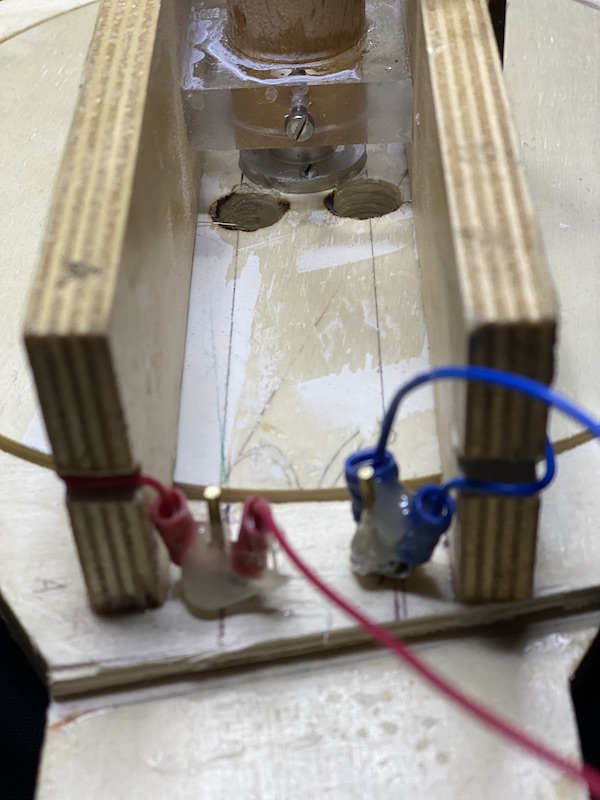 Les fils de 18/100ème sont ensuite soudés le long de deux petites plaques de laiton destinées à assurer le contact lors de la rotation de la plaque.