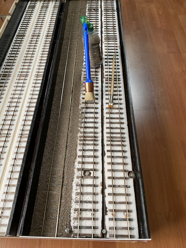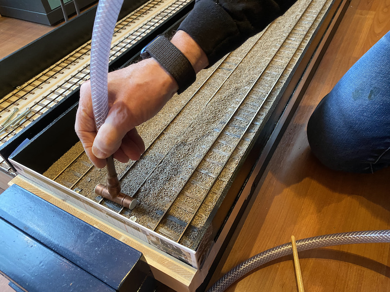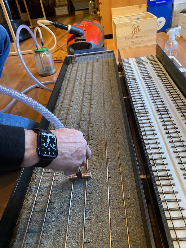 Et mise en œuvre de l’aspirateur à ballast, pour affiner l’étalement du ballast et également pour récupérer l’excédent du précieux ballast (je dis précieux, et ceux qui se sont essayé au tamisage comprendront).