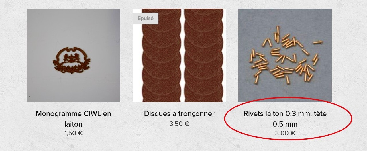 Indiquer les quantités serait un plus (pas que pour les rivets) ; le prix c'est bien mais pour combien d'exemplaires c'est mieux.