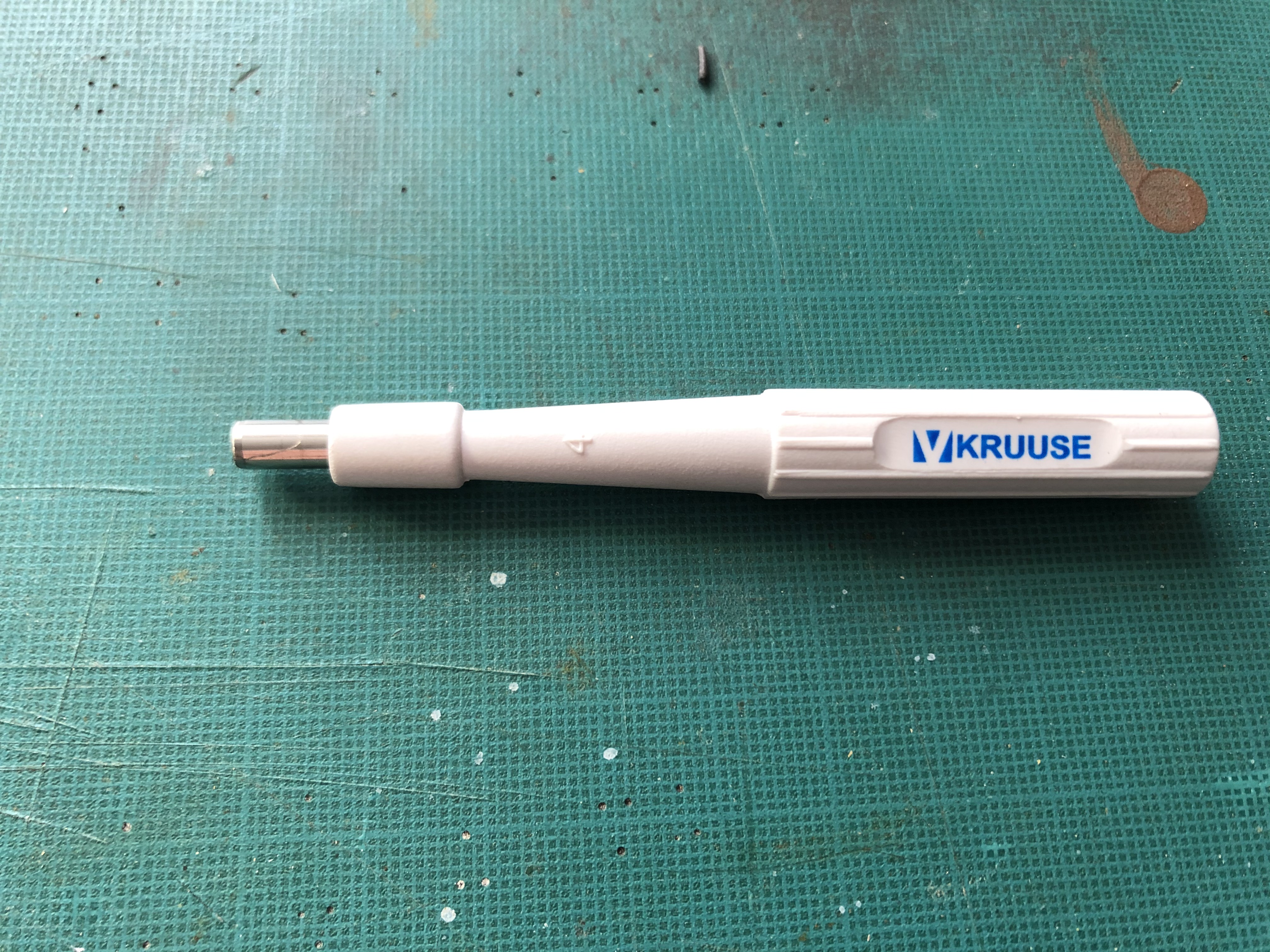 J'utilise maintenant un petit trocart pour "biopsie punch" normalement utilisé pour faire des petites carottes de peau devant être analysées. Je travaille avec du diamètre 3 mm et j'ai commandé un trocart de 4 mm que j'ai reçu ce matin (2,50 € pièce !)